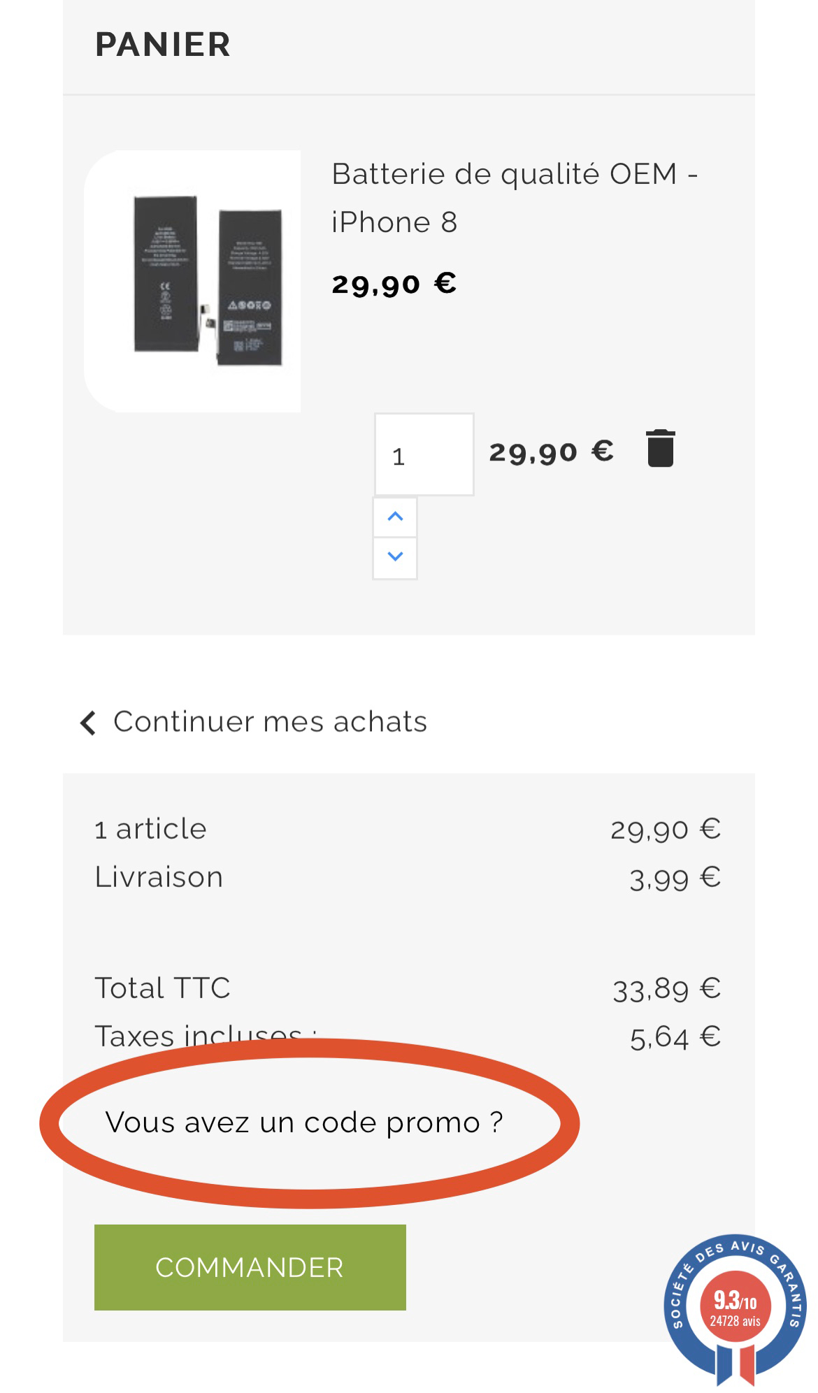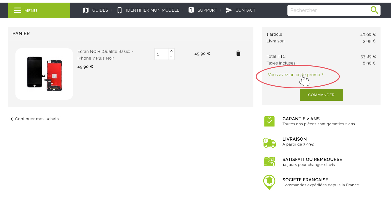- Entrez le code qui vous a été donné dans le champs prévu à cet effet dans la page panier