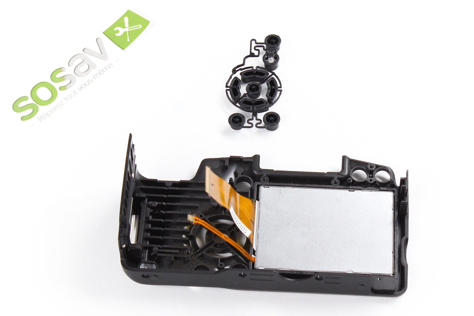 Les boutons de la façade avant du Canon EOS 1000D / Rebel XS / Kiss F sont désormais démontés.Procédez à leur remplacement par des pièces neuves si cela est nécessaire.
