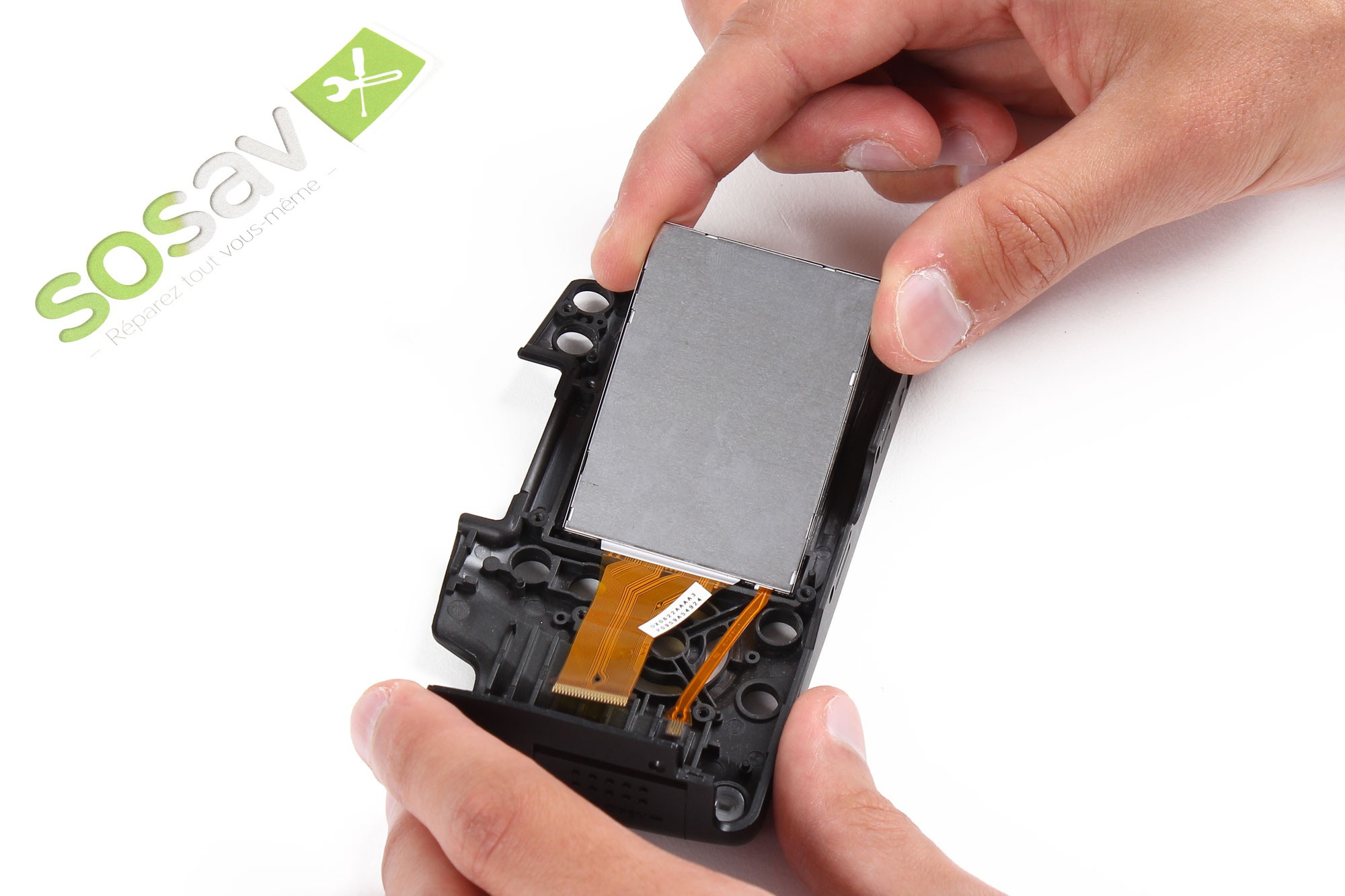 Saisissez ensuite l'écran LCD puis retirez-le en douceur de la façade avant.Pensez à retourner l'écran LCD lors de sa dépose, ses bords étant munis de colle.