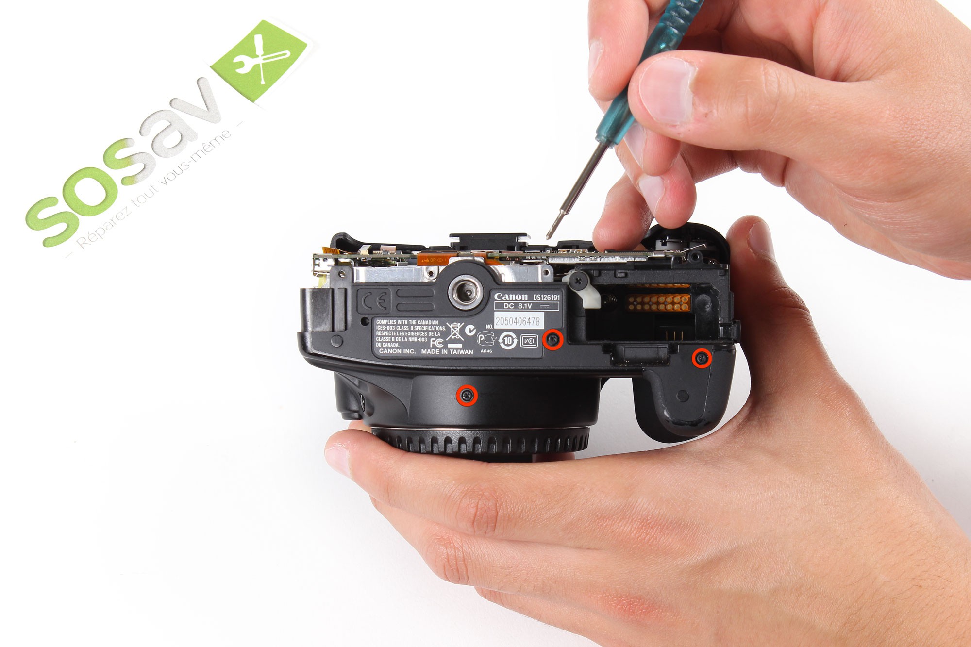 Pour remonter votre Canon EOS 1000D / Rebel XS / Kiss F suivez ce guide en sens inverse.