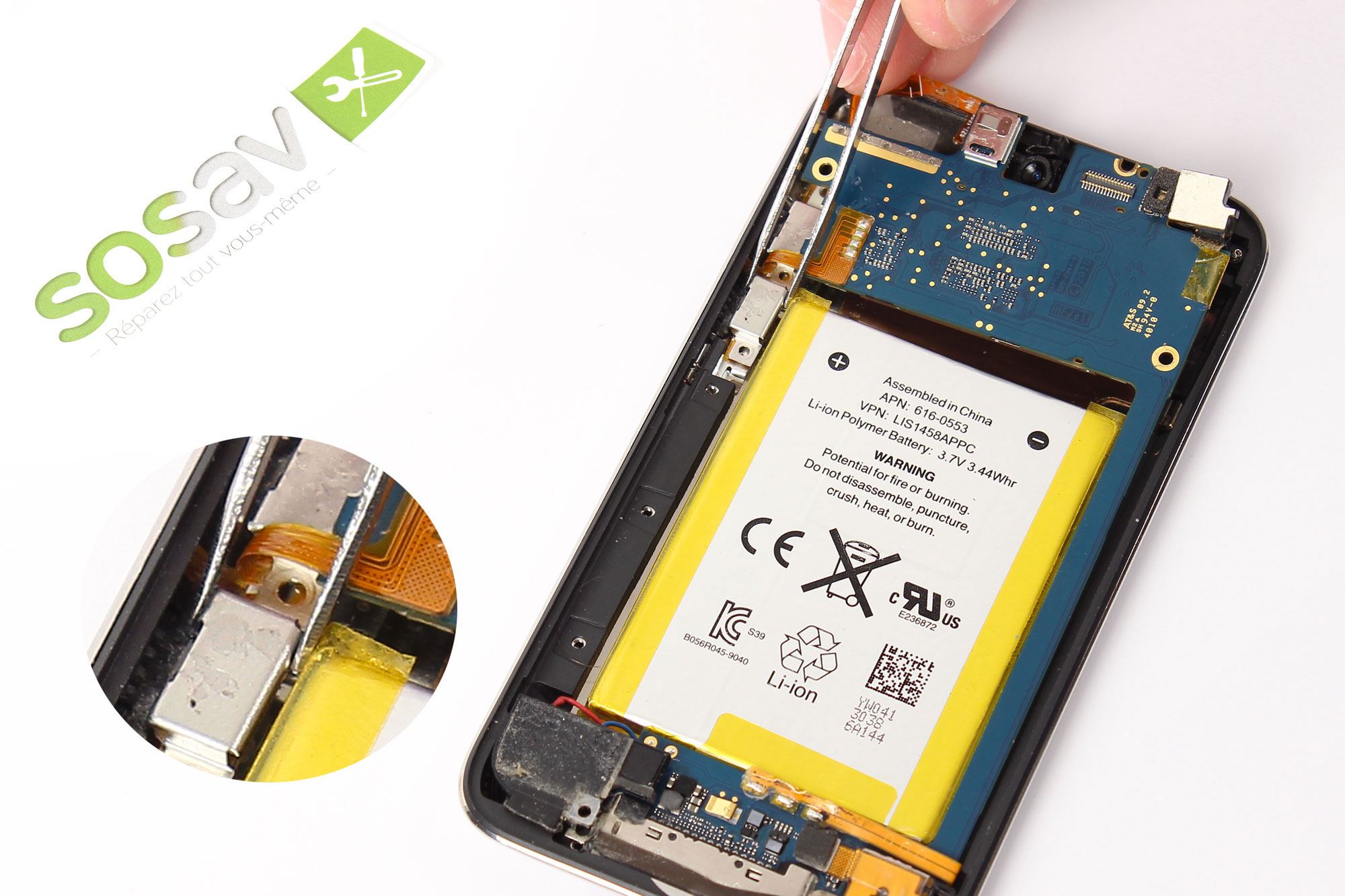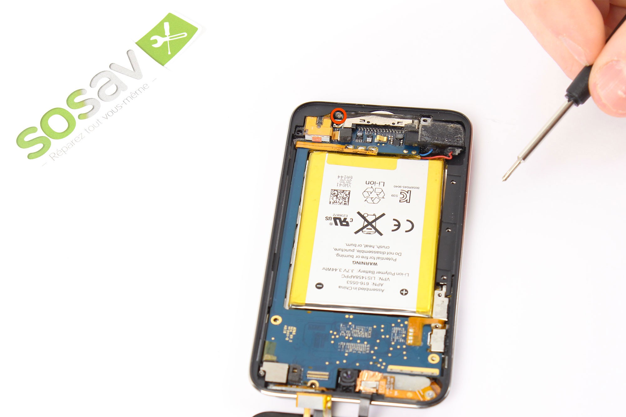 Celles-ci retiennent le haut de la carte mère à la coque arrière de liPod Touch 4G.
