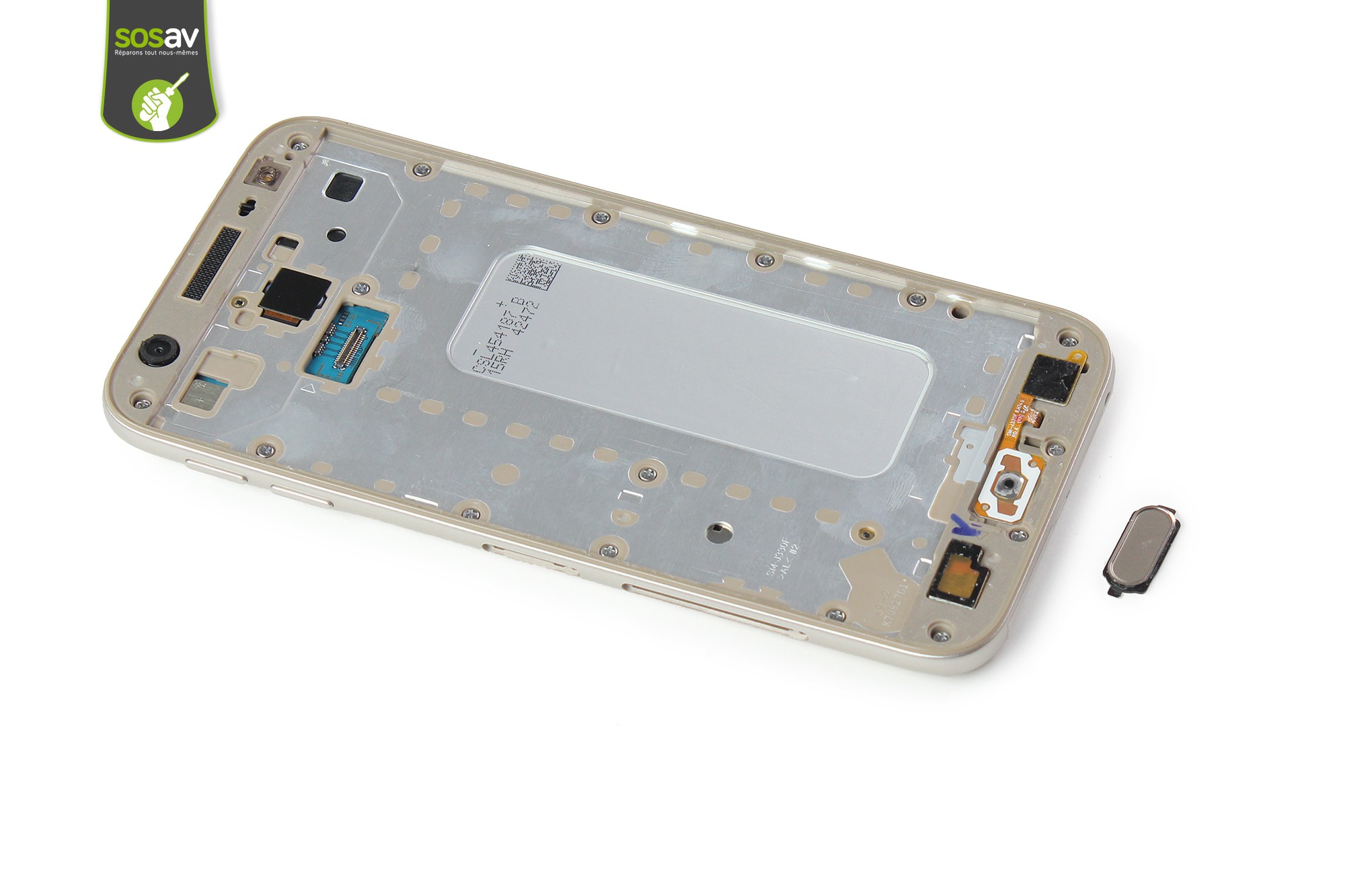 Le bouton home de votre Galaxy J3 2017 est désormais démonté.Procédez à son remplacement par un bouton home neuf si nécessaire.