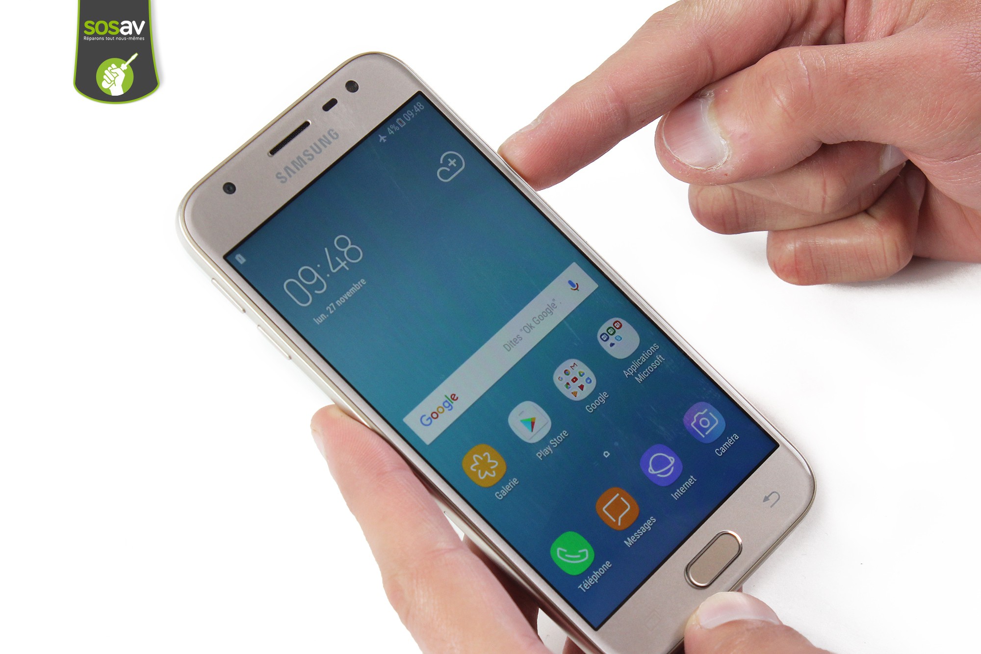 Votre bouton home Galaxy J3 2017 est cassé ? Il a été perdu et cela vous empêche de l'utiliser correctement ? Si la navigation est donc plus compliquée, vous pouvez agir et régler le problème grâce à SOSav ! Nos experts ont réalisé ce guide de réparation illustré et commenté afin de vous expliquer comment changer ce bouton home vous-même et oublier tous les problèmes rencontrés jusqu'à présent.