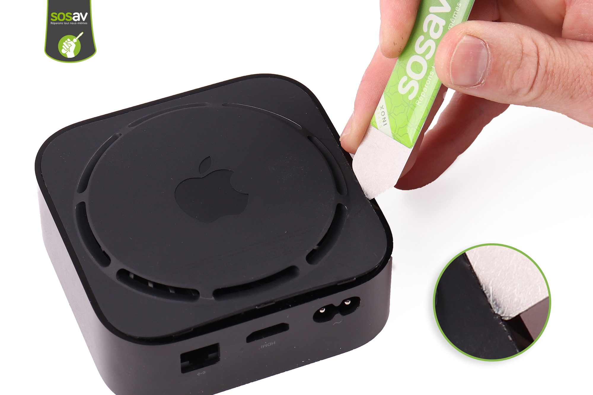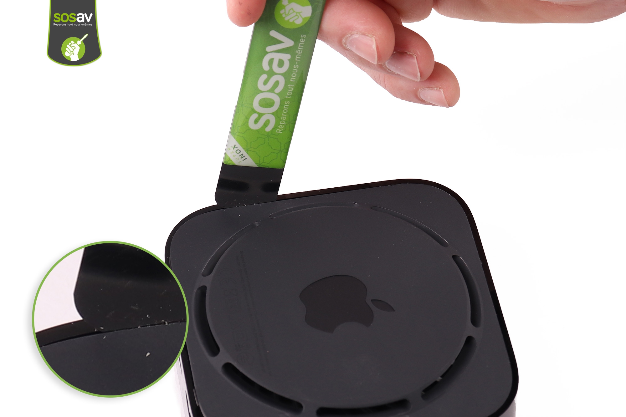 En effet, chez SOSav nous avons la solution pour vous ! Nos experts SOSav sont là pour vous apporter toute l'aide qu'il vous faudra, et ce notamment grâce à nos guides de réparation Apple TV gratuits. Nous vous avons préparé un guide de réparation capot supérieur Apple TV 4K gratuit, avec commentaire et des illustrations pour chaque étapes ! Il vous suffit de suivre nos conseils et notre guide afin de savoir comment redonner une nouvelle vie à votre Apple TV sans avoir à débourser des sommes astronomiques !