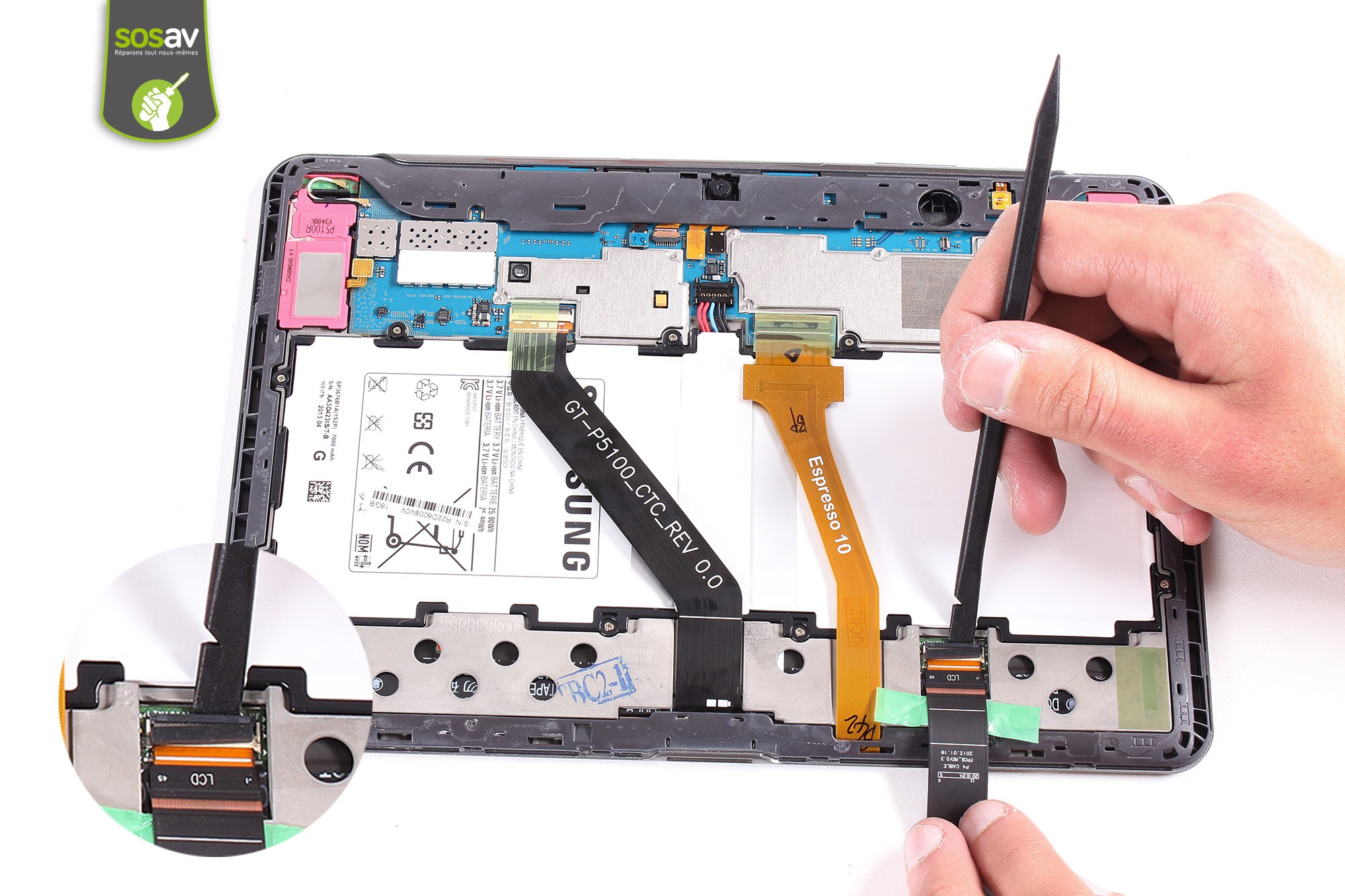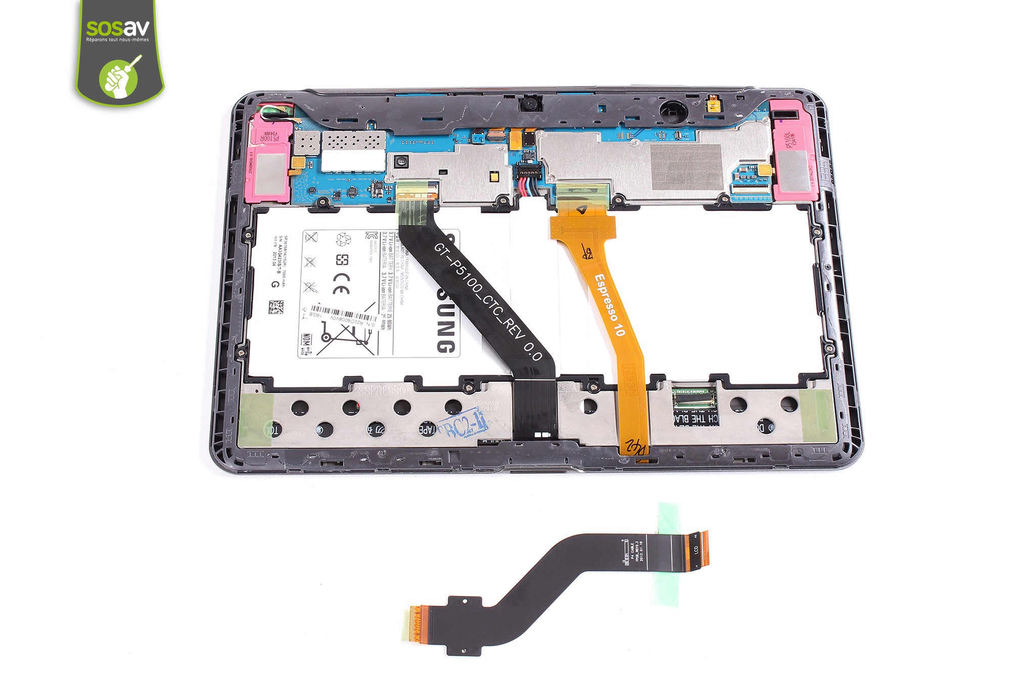 Ce guide vous permettra de démonter la nappe de liaison de l'écran LCD de la Samsung Galaxy Tab 2 10.1 poucesSymptômes : Problèmes d'affichage ou pas d'affichage sur un écran LCD neuf ou non cassé