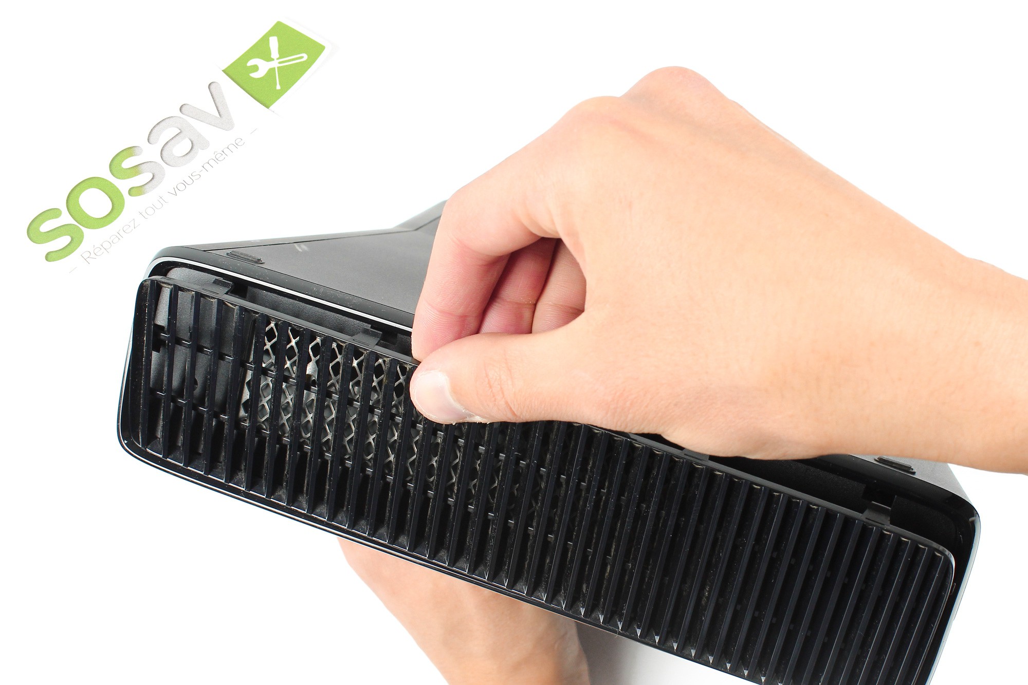 La seconde grille d'aération de la Xbox 360 Slim est désormais démontée.