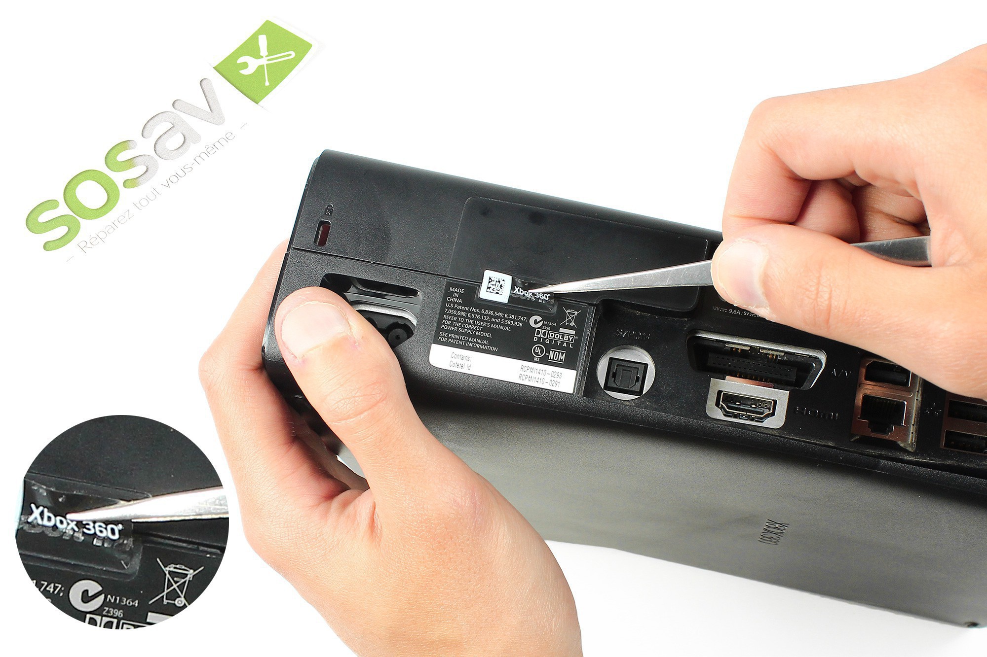 Utilisez ensuite une pince afin de retirer l’autocollant de garantie de la console.