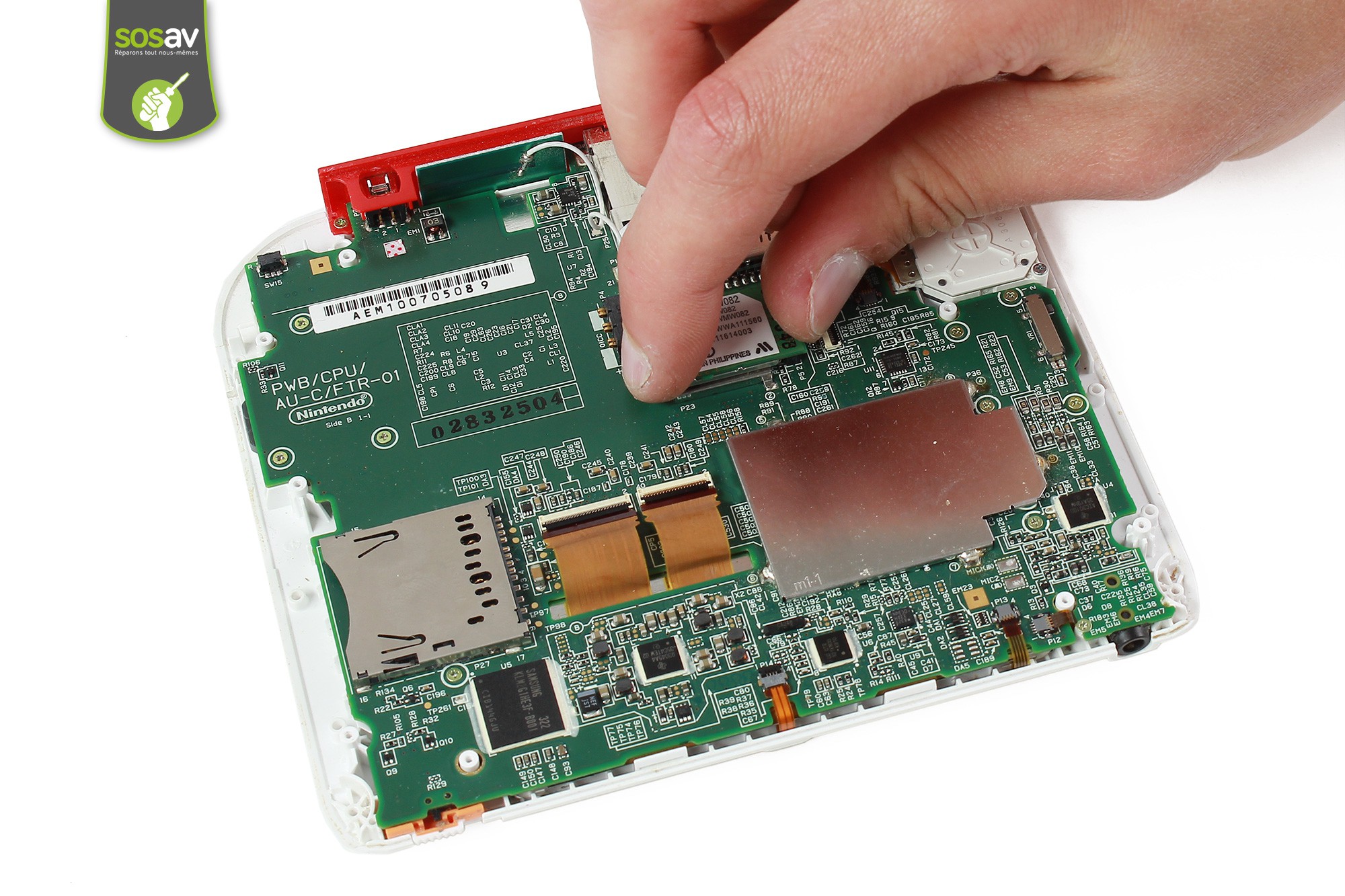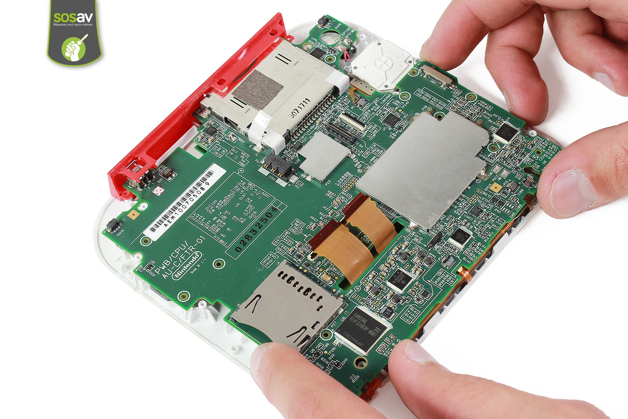 Saisissez délicatement la carte mère puis procédez ensuite à son retrait.La carte mère de votre Nintendo 2DS est désormais démontée.