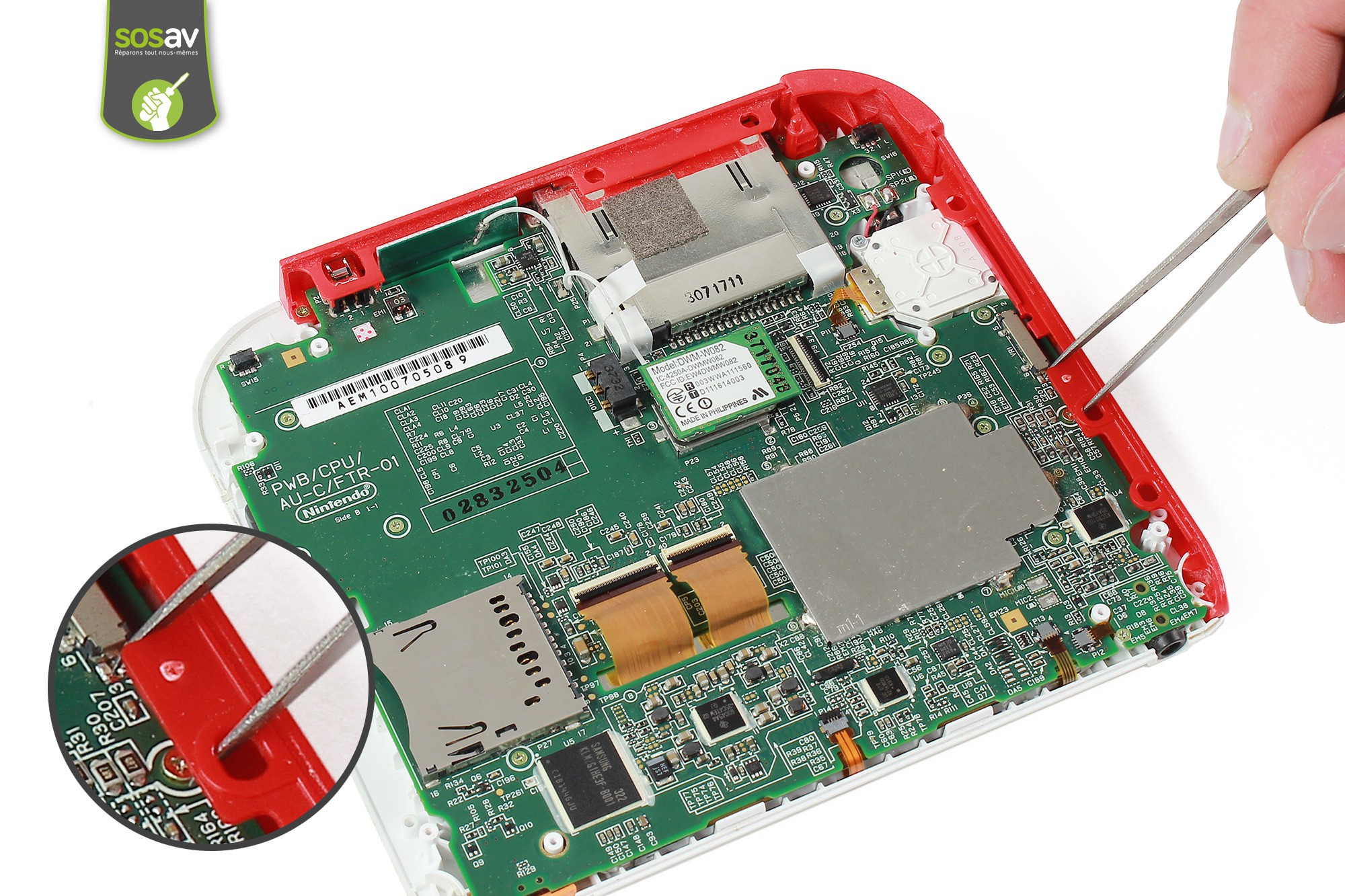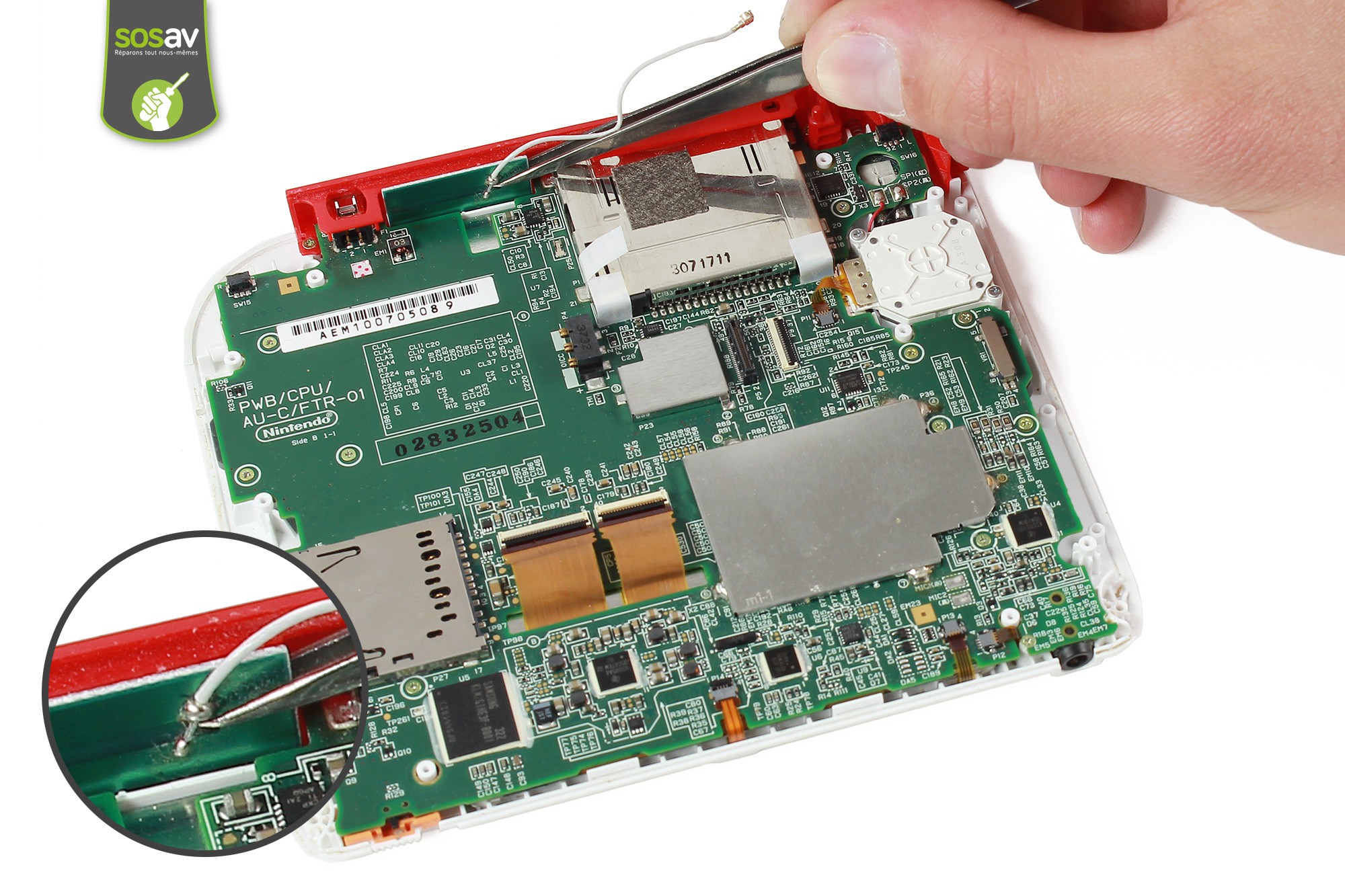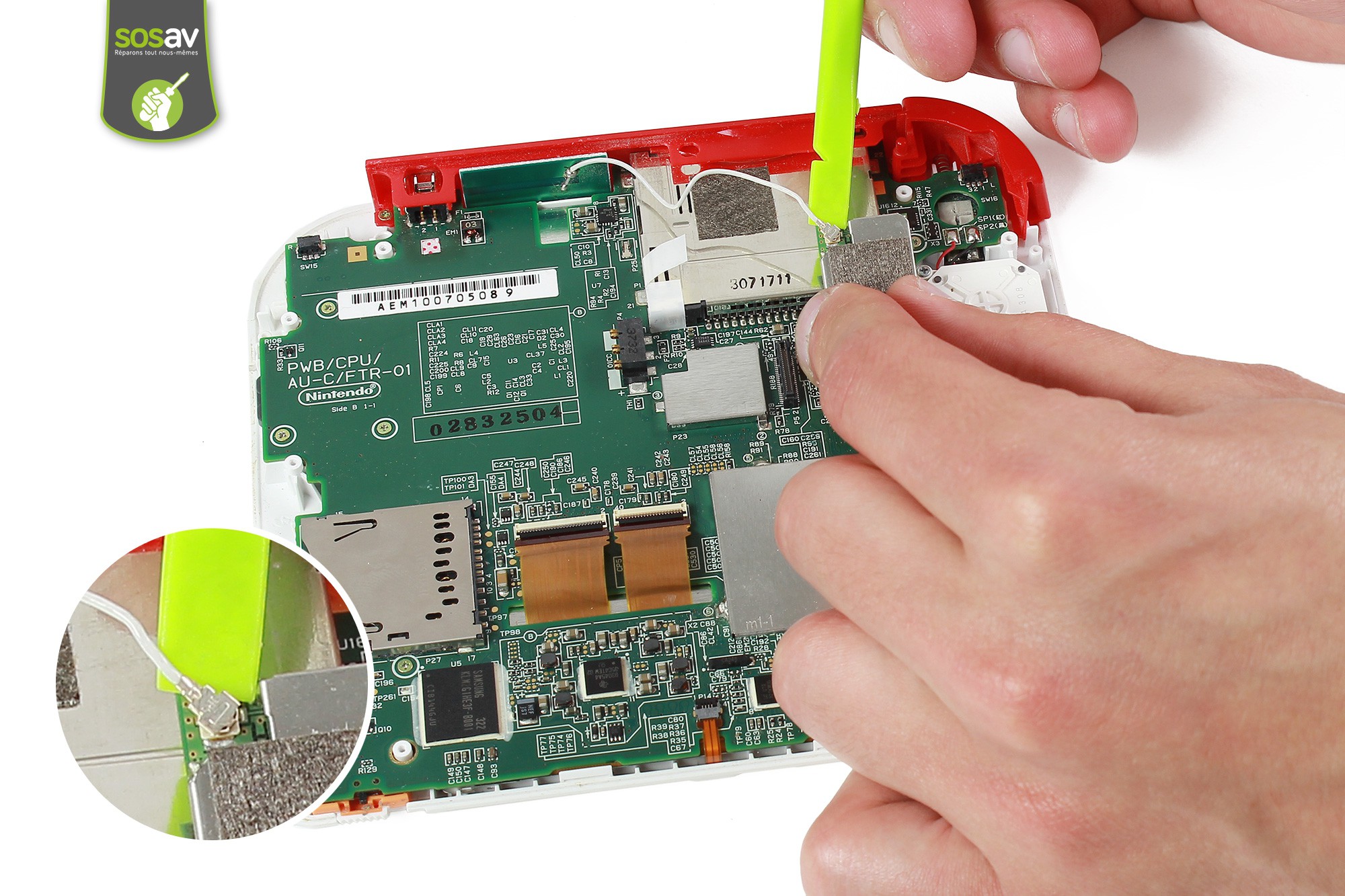 Avec cette pince, saisissez l'antenne WiFi puis retirez-la.L'antenne WiFi de votre Nintendo 2DS est désormais démontée.