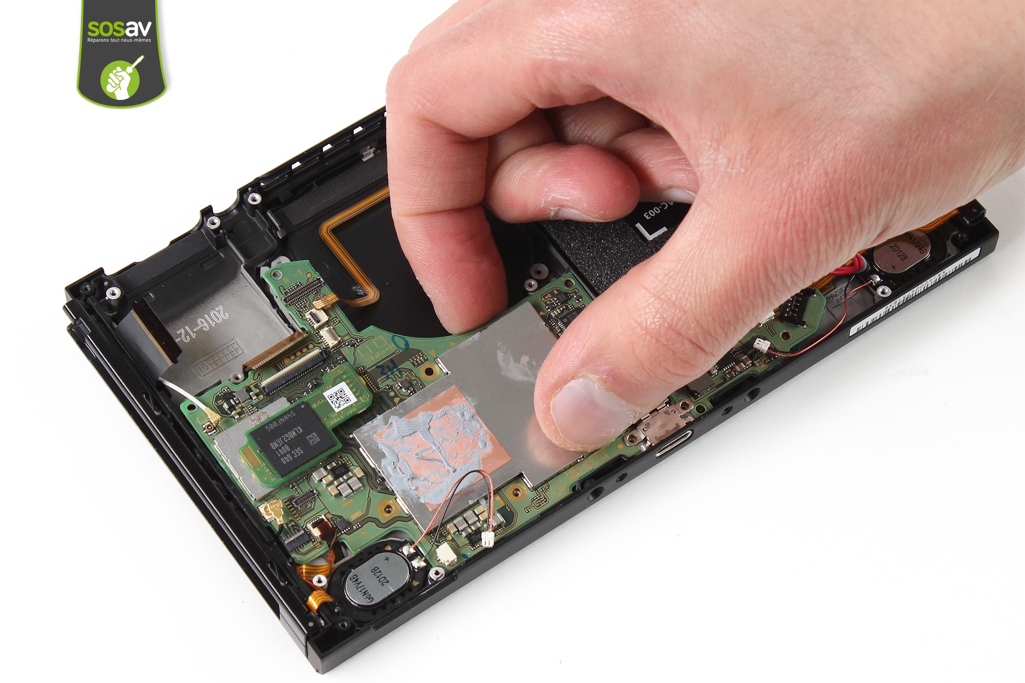 Saisissez puis retirez le blindage.Le blindage métallique de votre Nintendo Switch est désormais démonté.