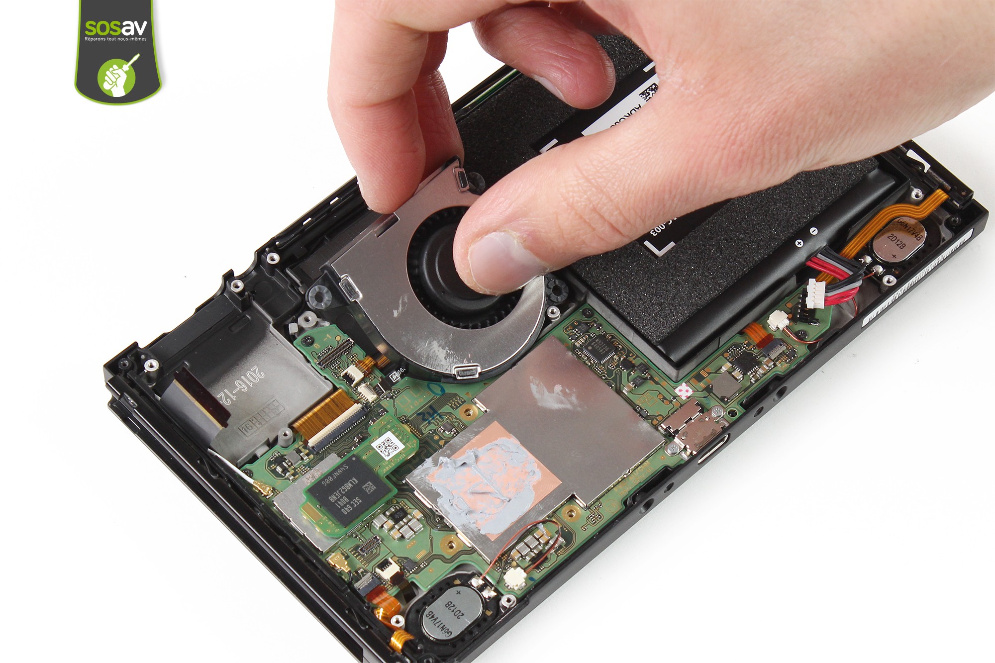 Saisissez le ventilateur puis procédez à son retrait.Le ventilateur de votre Nintendo Switch est désormais démonté.