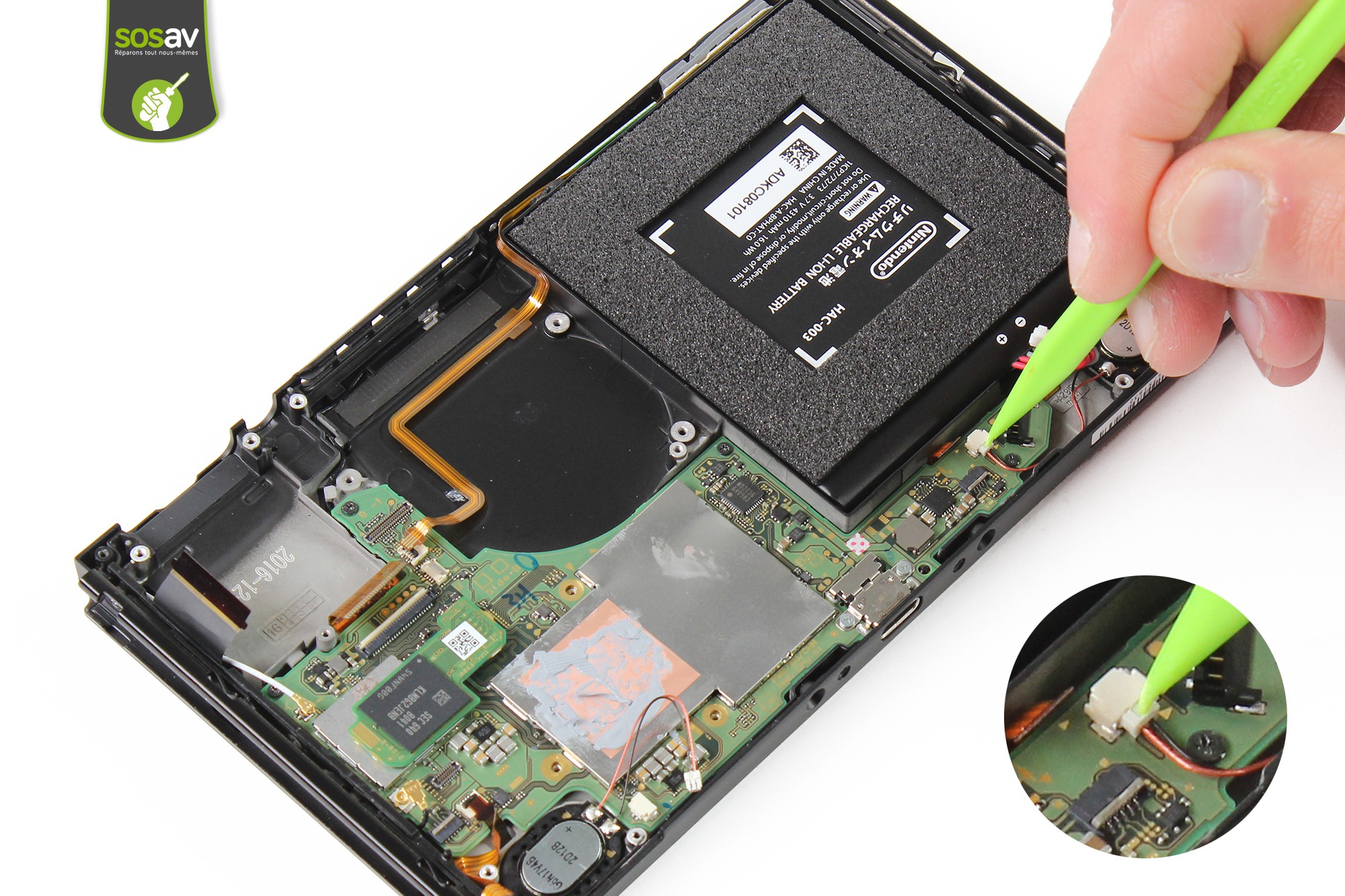 A l'aide de la pointe de la spatule en nylon, déconnectez le haut-parleur gauche.