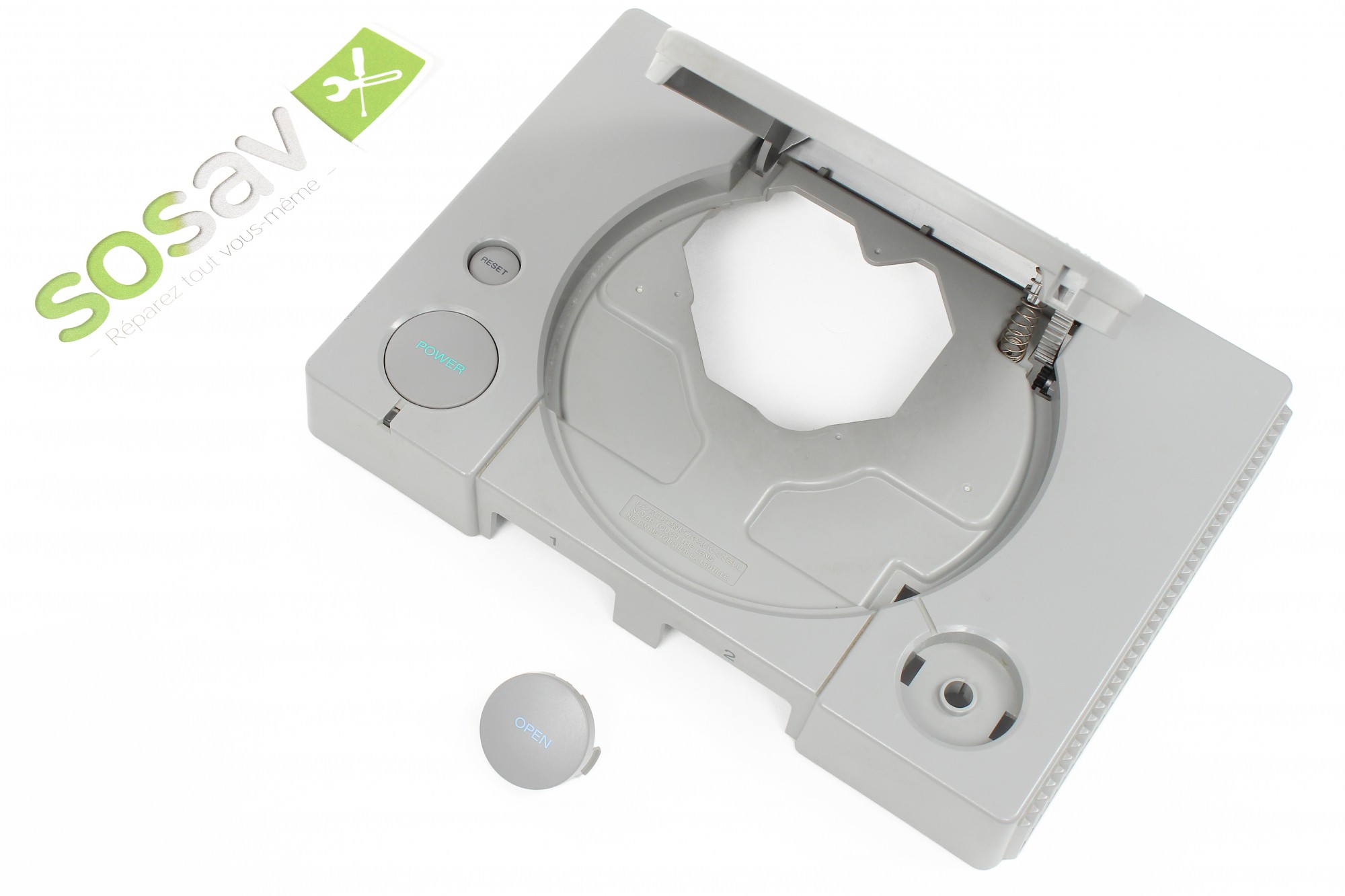 A présent le bouton Open de votre PlayStation est démonté.