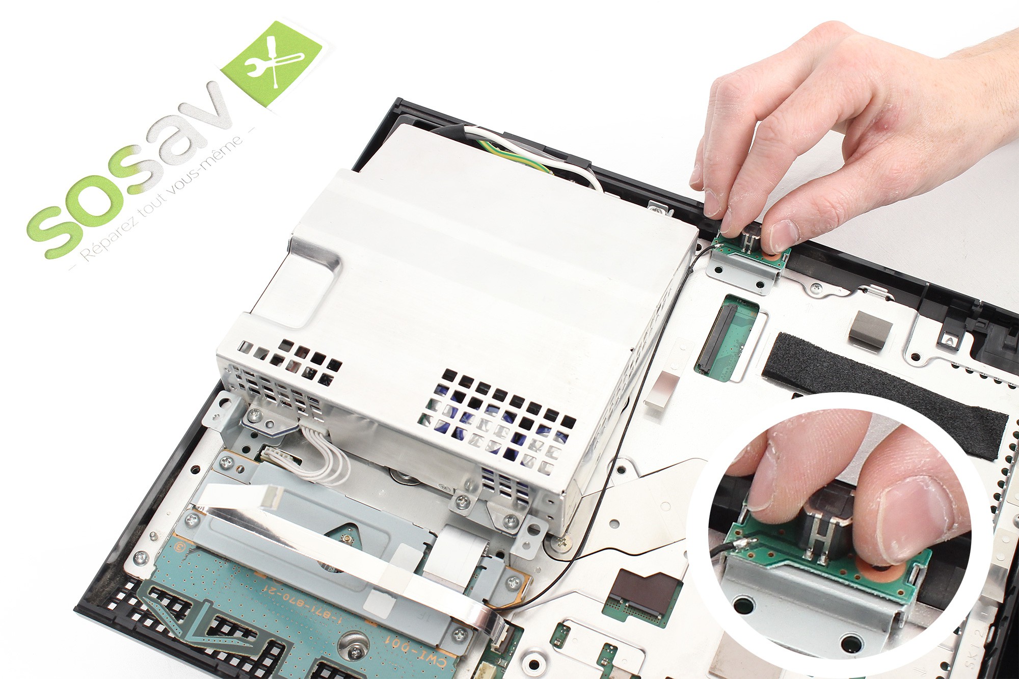 Celui-ci retient la nappe de connexion du lecteur Blu-Ray à la carte mère de la PS3.