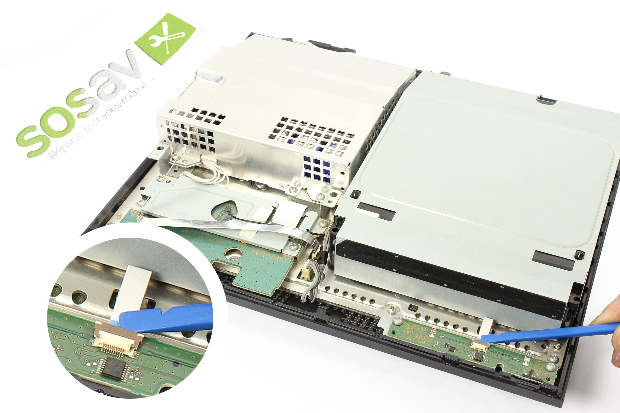 Ceci dans le but de libérer la nappe de connexion de la carte power de votre PS3 Fat.