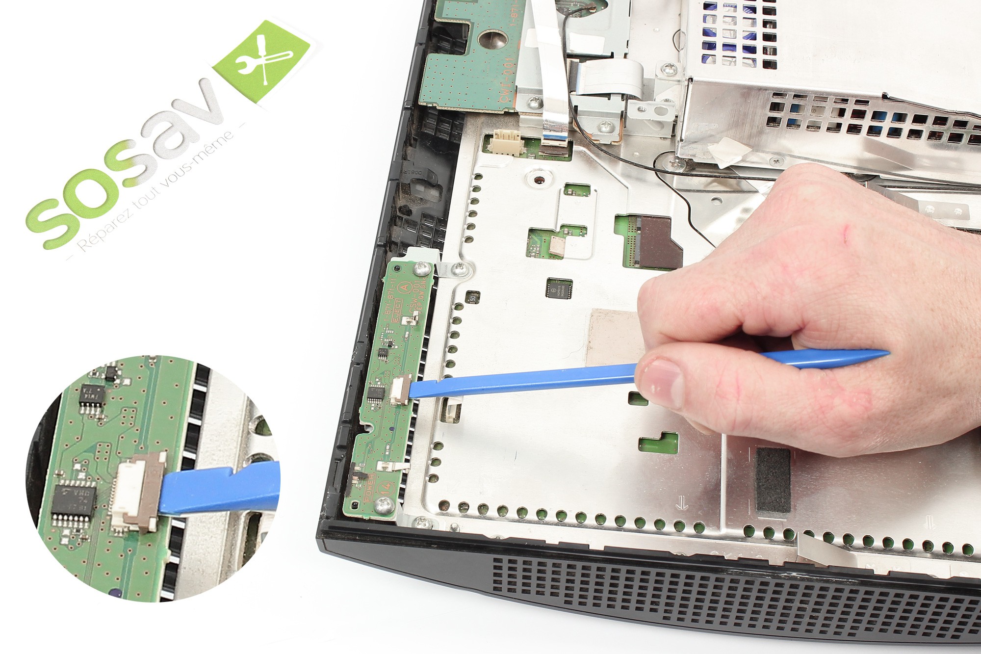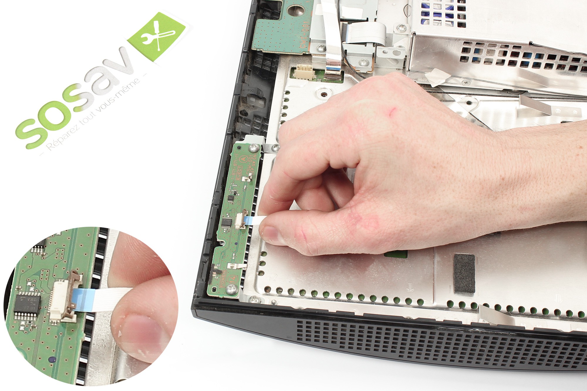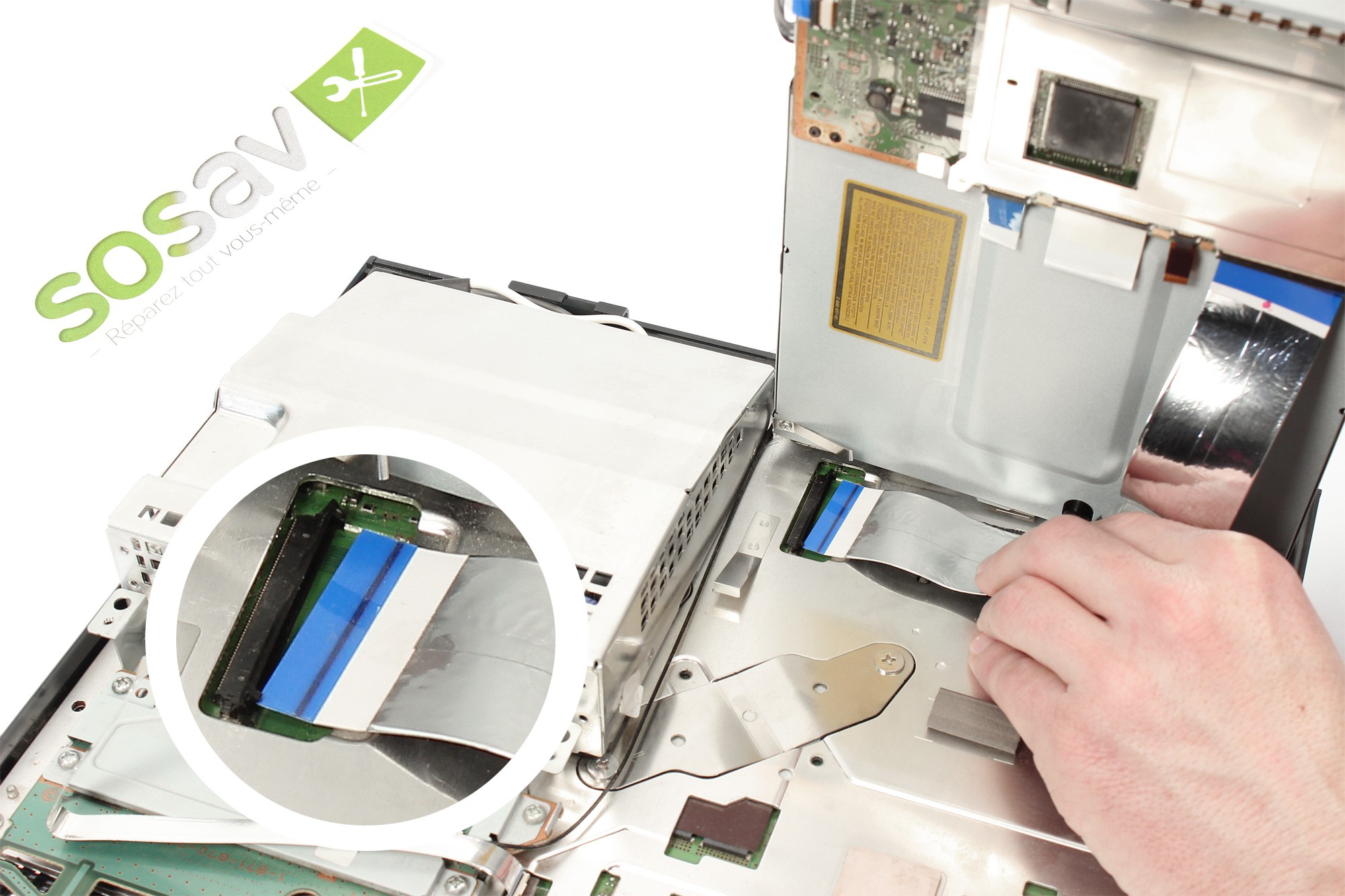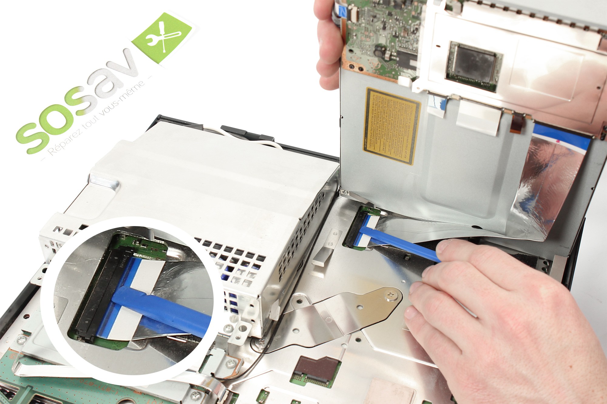 Celui-ci retient la nappe de connexion du lecteur Blu-Ray à la carte mère de la PS3.