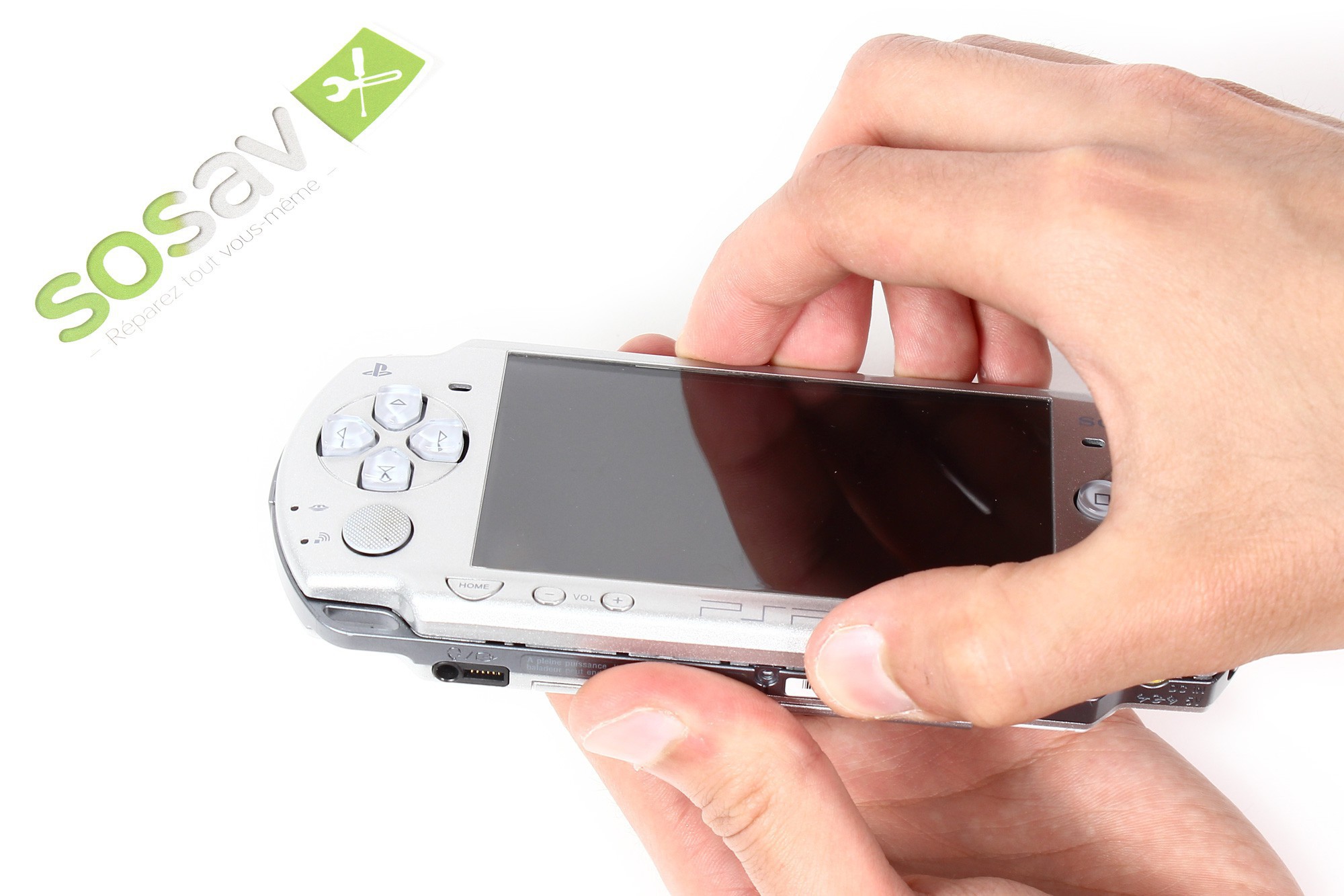 Saisissez ensuite la face avant de votre PSP 2000, puis procédez délicatement à son retrait.