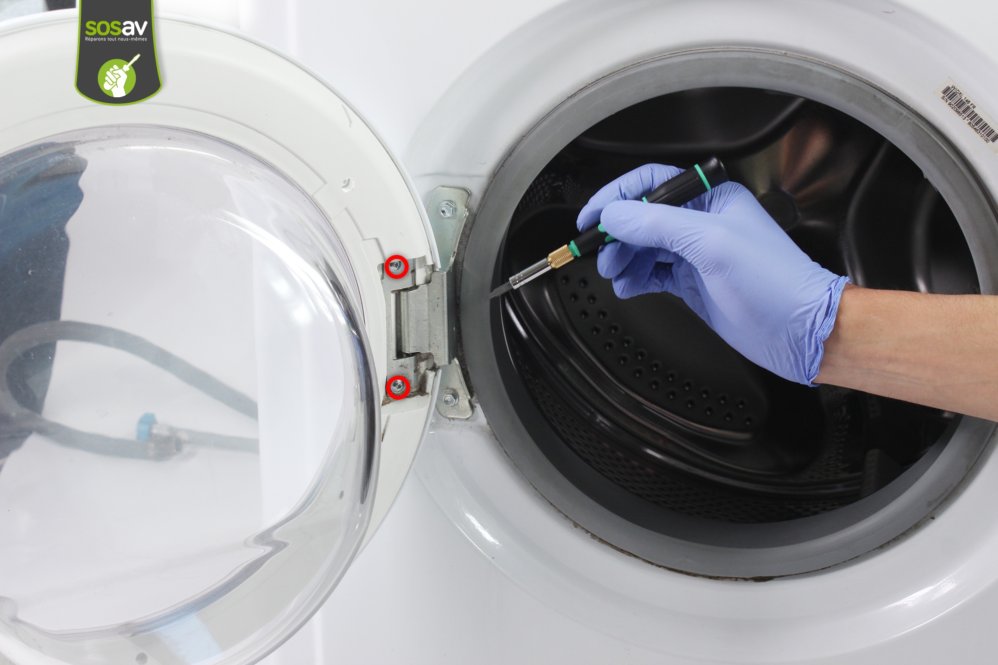 La porte ou le hublot de votre machine à laver est fissurée et présente des fuites d'eau ? Ou même s'il n'y a pas de signes apparents de casse, vous constatez des fuites lorsque vous laver votre linge ? Pas de panique, SOSav est là pour vous aider ! Nos techniciens ont réalisé ce guide de réparation illustré et commenté afin d'expliquer comment remplacer la porte de sa machine à laver soi-même en quelques minutes et pour deux à trois fois moins cher que de faire appel à un dépanneur professionnel.