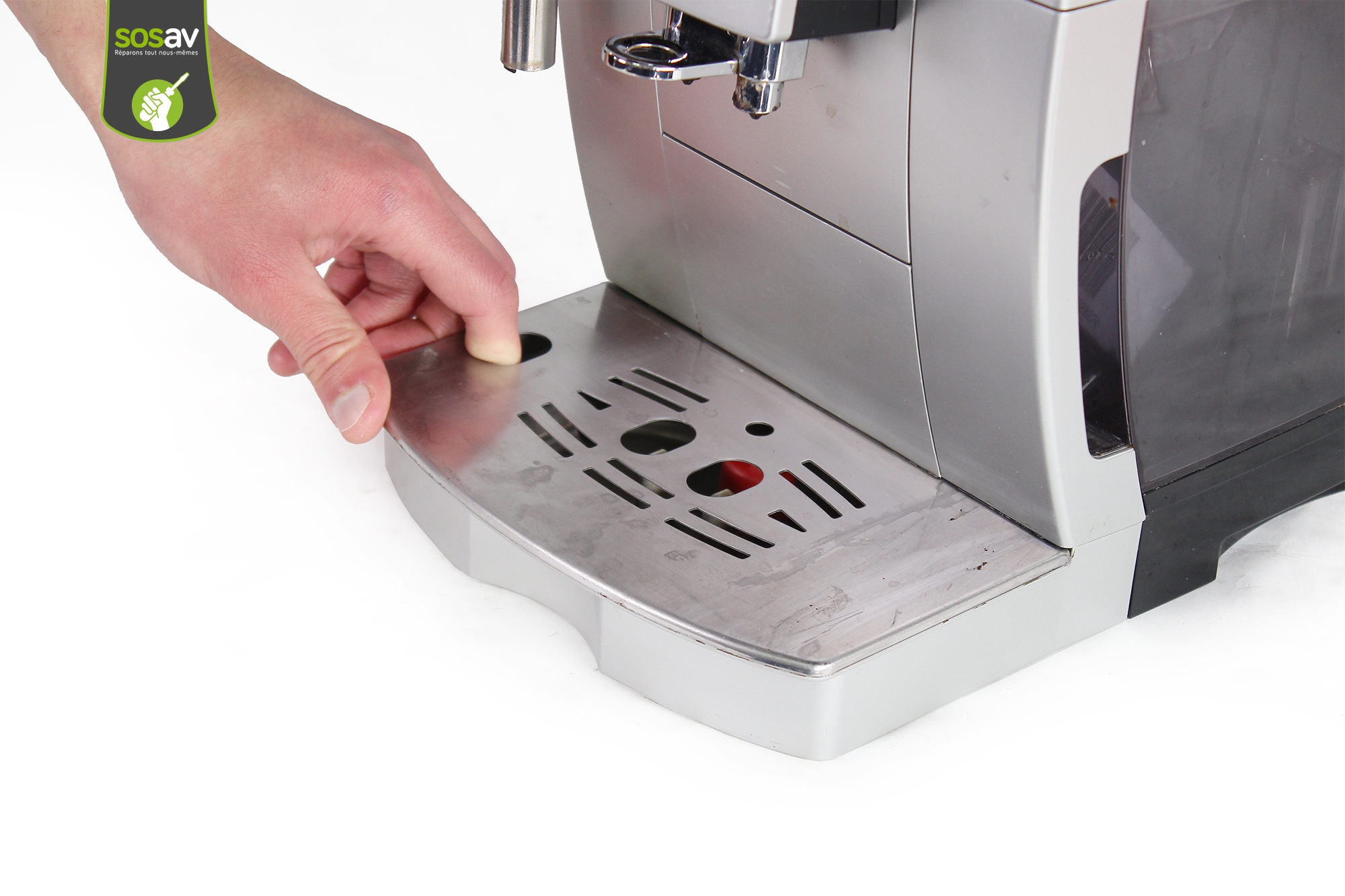 Votre machine à café Delonghi ECAM 23.420.SB déborde quand elle se purge car le tiroir qui récupère l'eau est trop plein ? Il faut le vider et le nettoyer ? Le tiroir d'arrivée d'eau s'est cassé suite à une mauvaise manipulation ? Pas de problème, SOSav est là pour vous montrer la manipulation à réaliser pour le changer en 5 minutes ! Grâce à ce guide de réparation, vous saurez comment procéder et pourrez continuer à profiter de votre machine espresso.