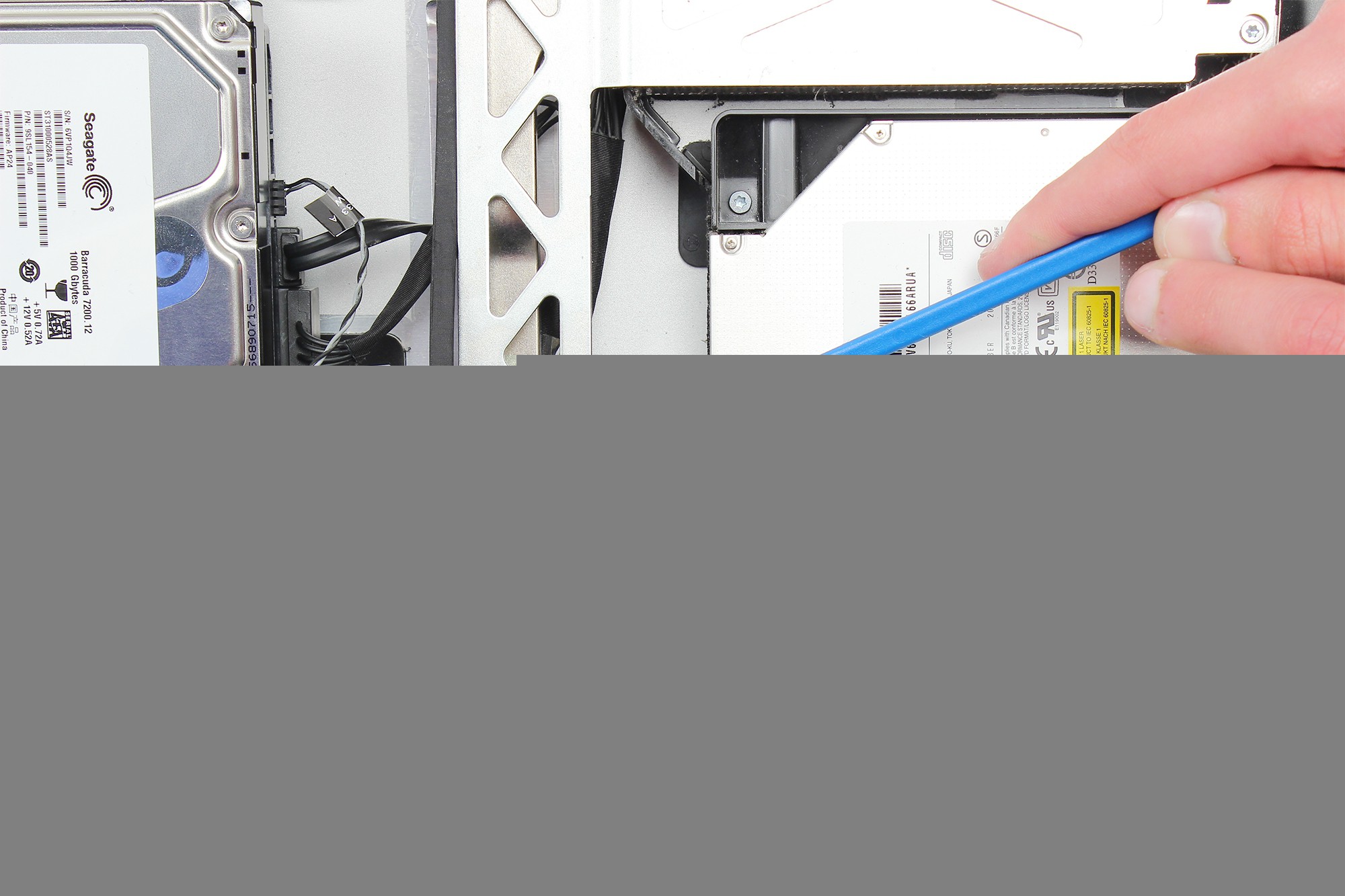 Le câble d'alimentation et de données du lecteur optique est désormais démonté.