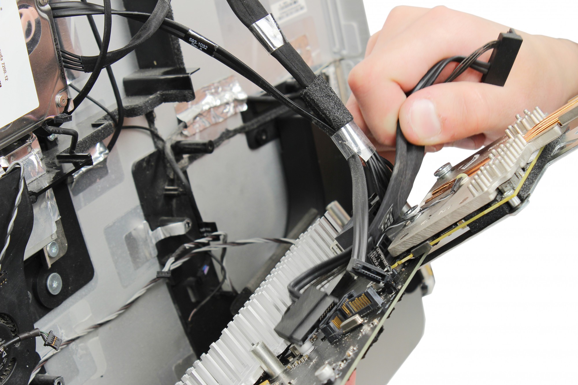 Pour commencer, tirez légèrement sur le câble de données du disque dur afin de le déconnecter.