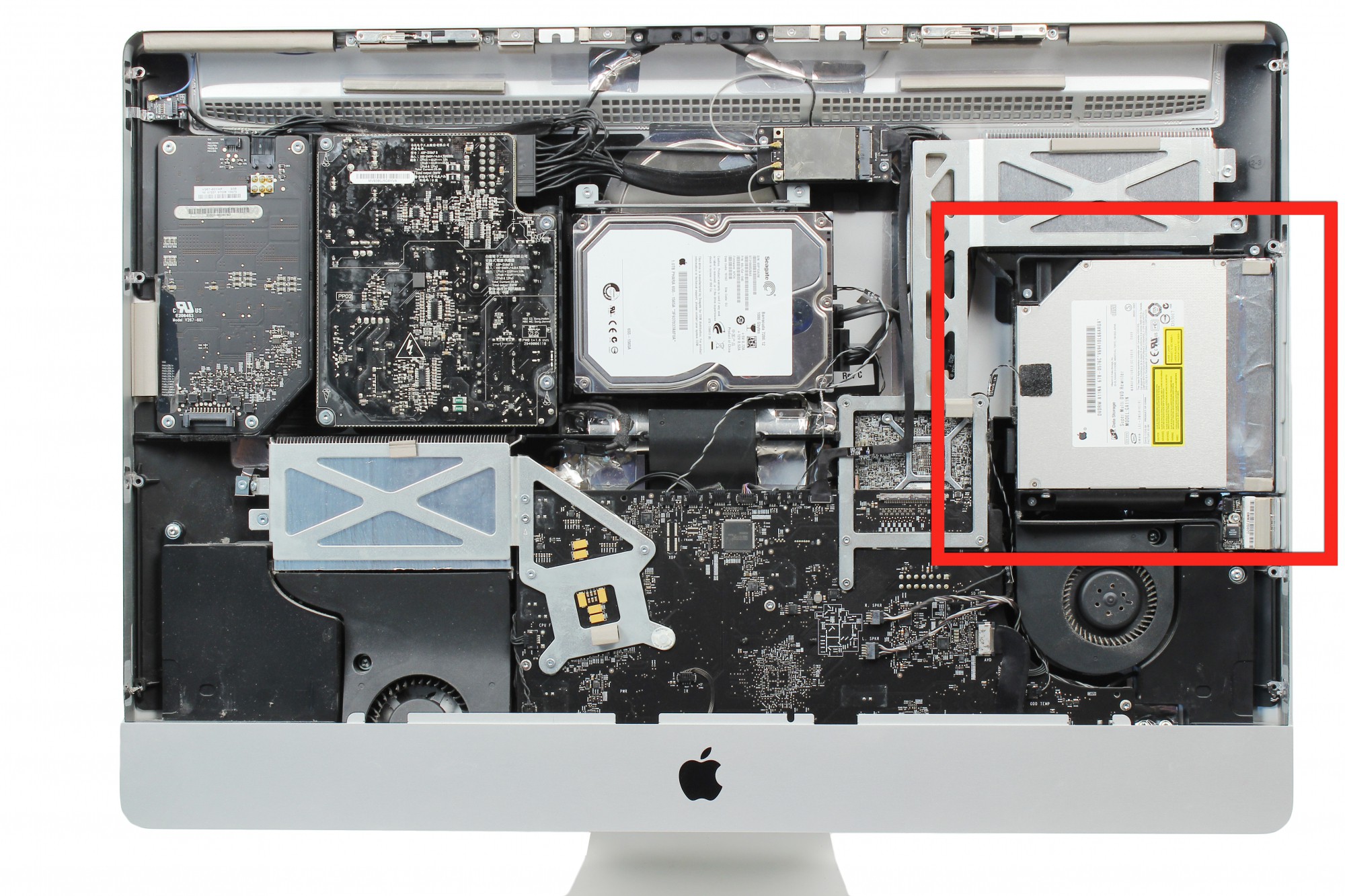 Le lecteur optique (SuperDrive) est désormais démonté.