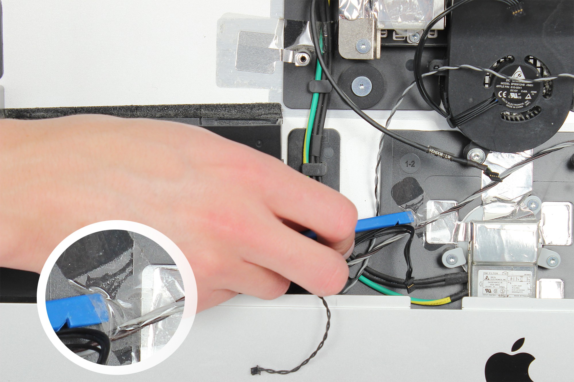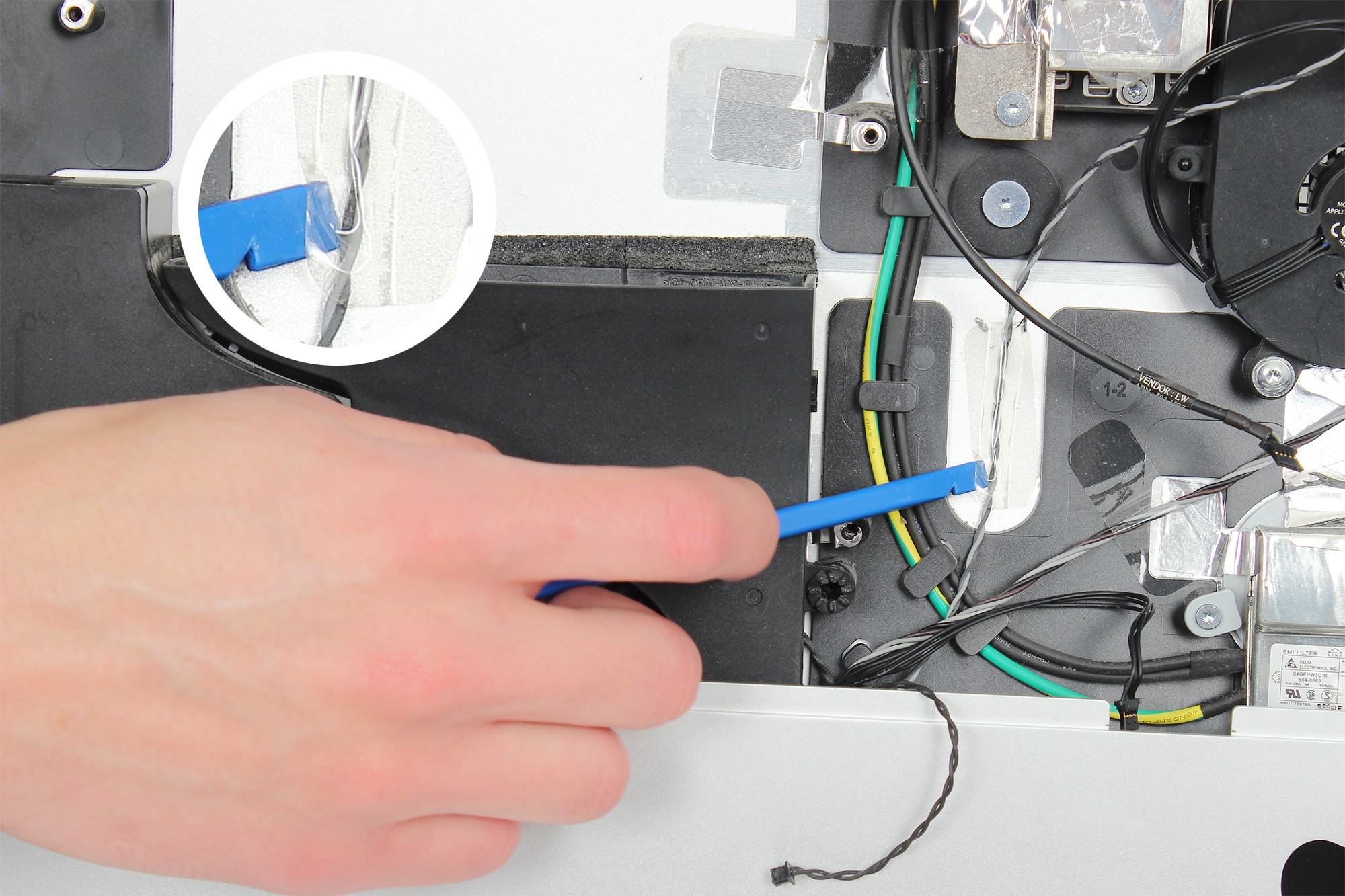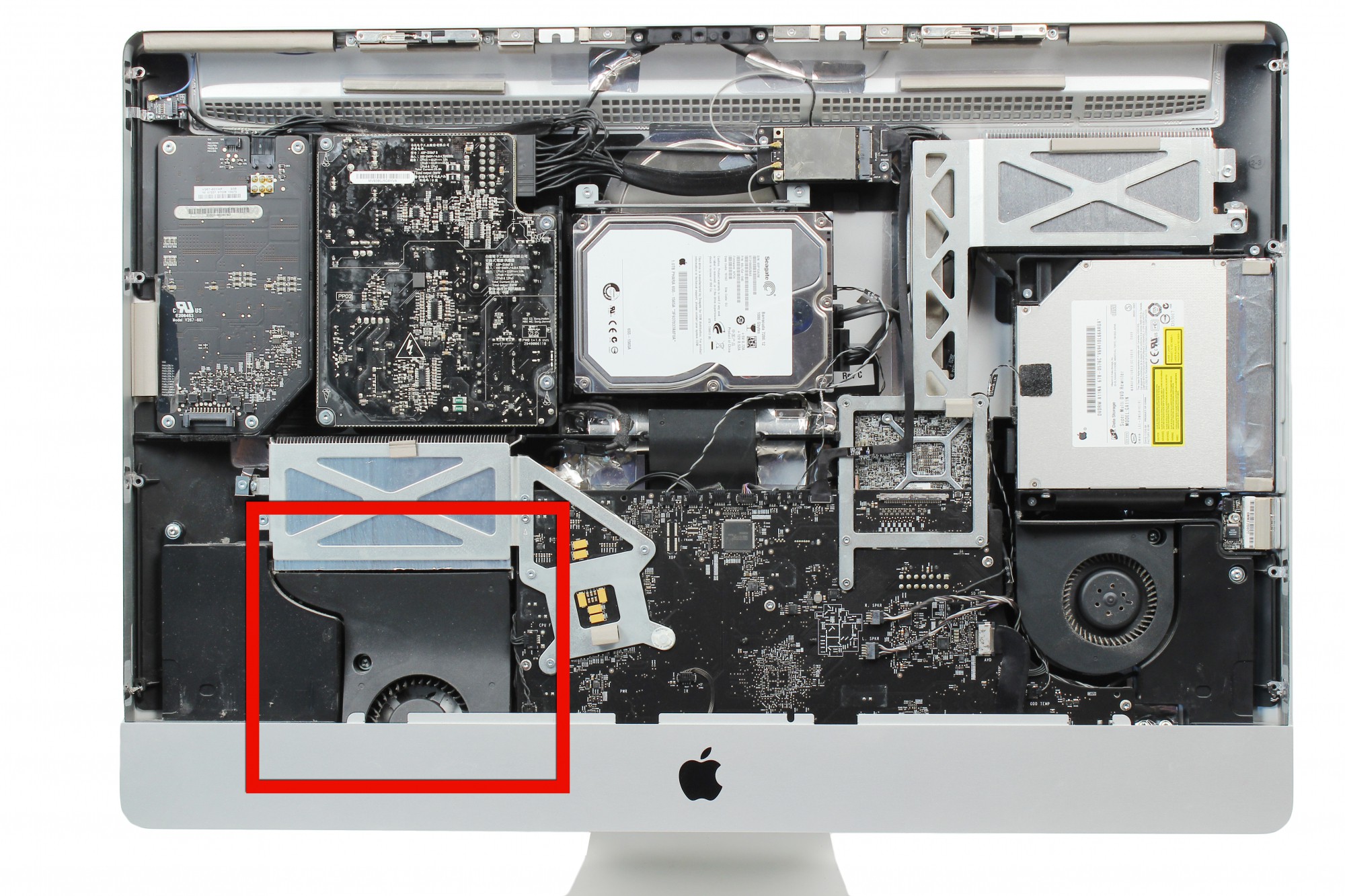 Le ventilateur du processeur est localisé en bas à gauche de l'iMac comme indiqué sur la photo.