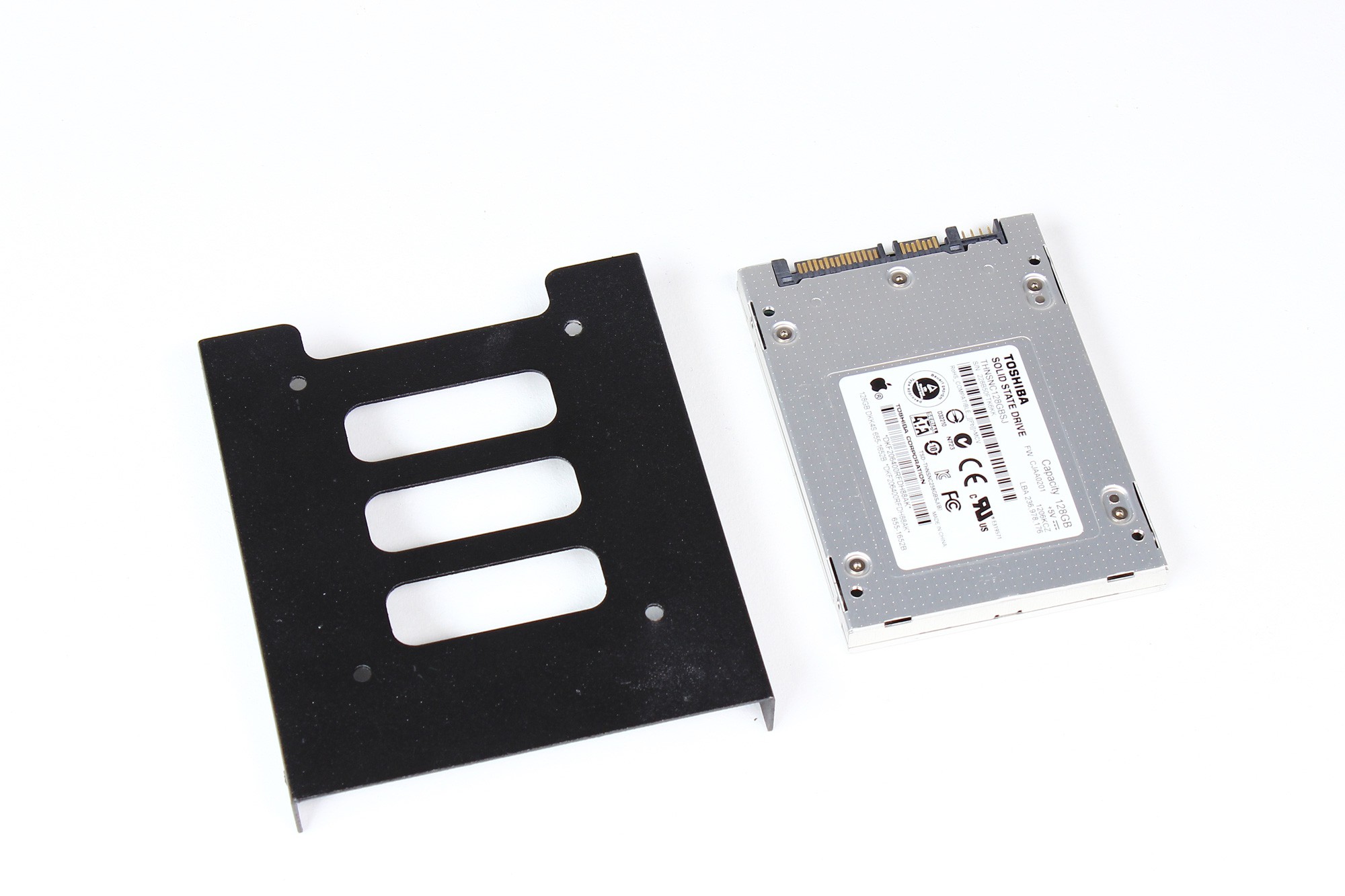 Le kit de mise à niveau du disque dur d'origine vers SSD contient un SSD ainsi que son support de fixation.
