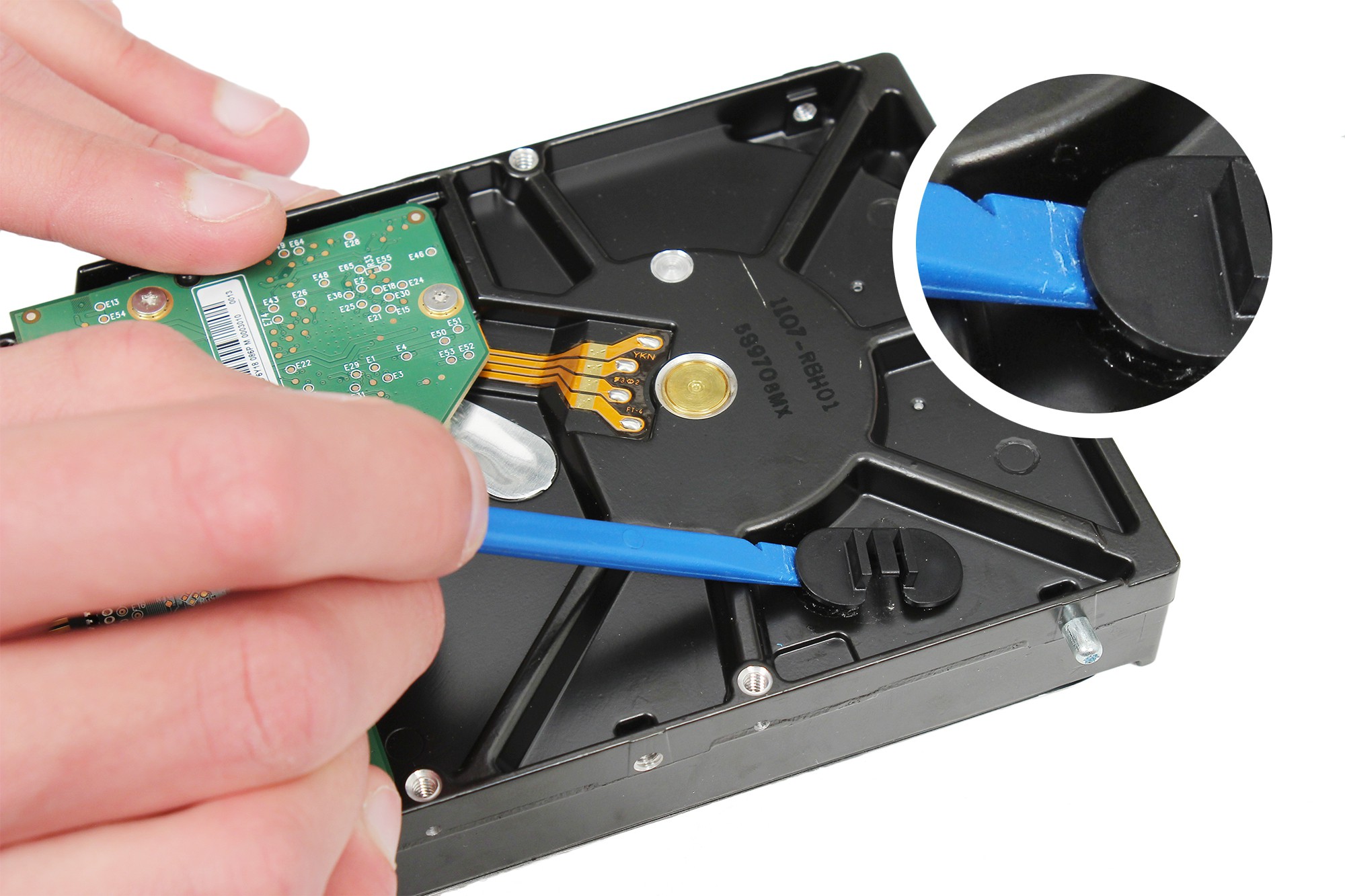 Utilisez une spatule en nylon afin de déconnecter délicatement le câble de la sonde de température du disque dur.