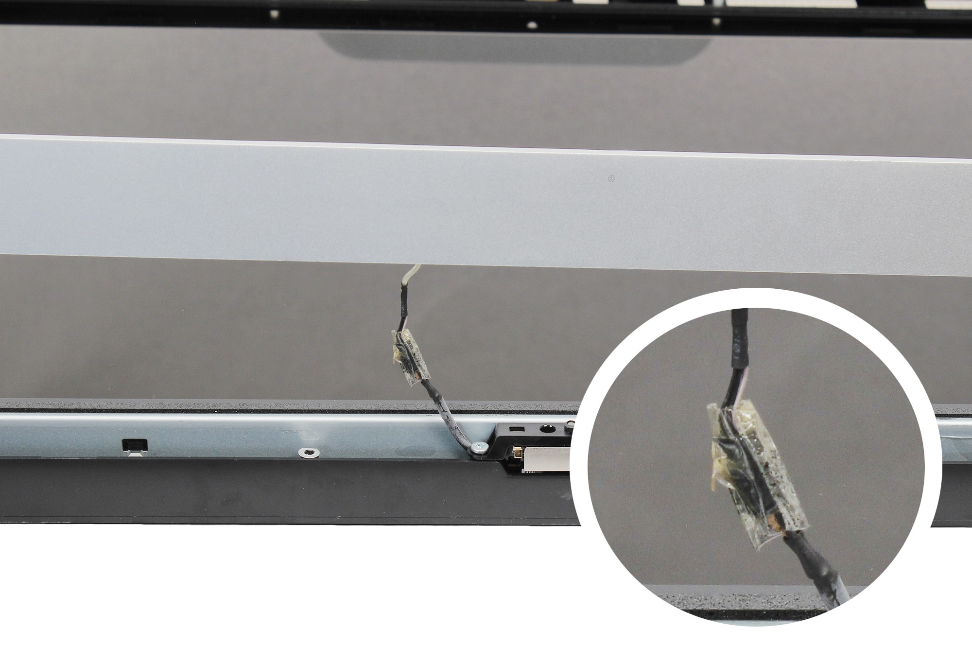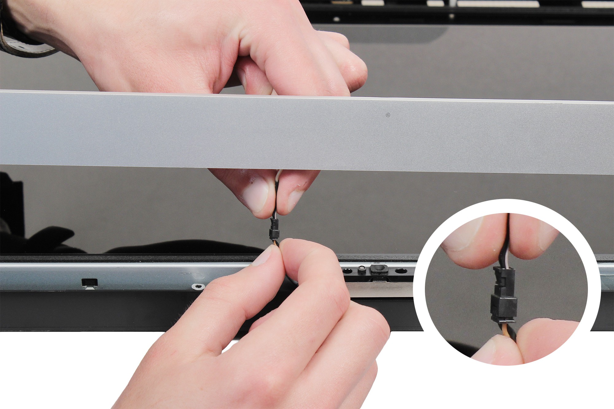 Ne retirez pas encore le châssis supérieur ! Ce dernier est relié à l'iMac via le câble du microphone.