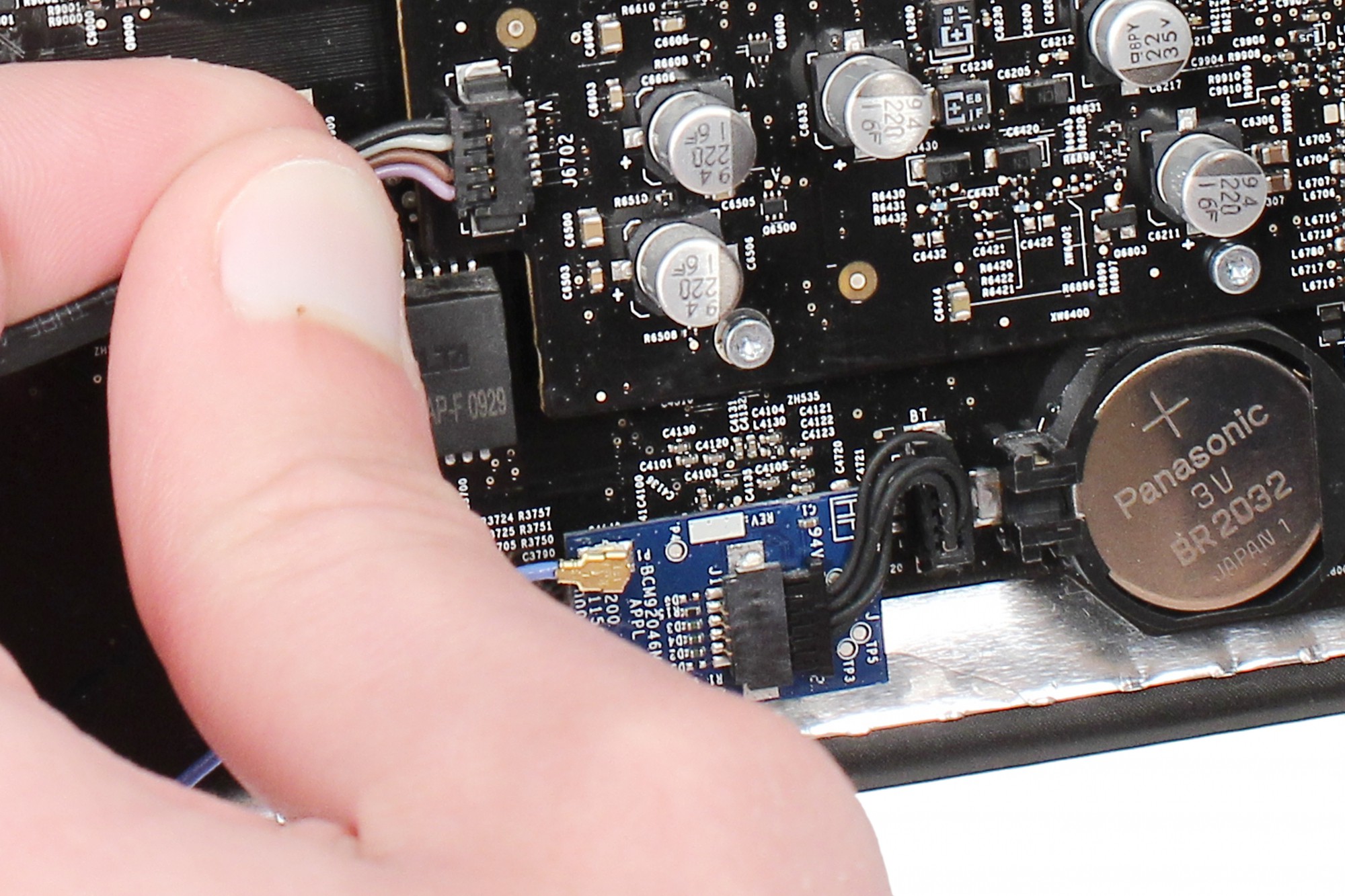 Retirez les deux vis Torx T6 maintenant le connecteur de données de l'écran LCD à la carte mère de l'iMac.