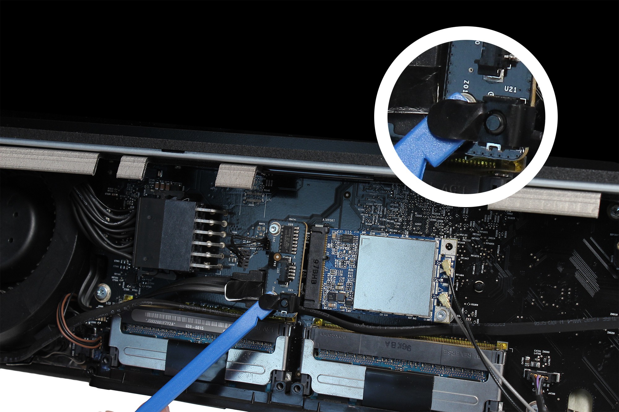 Le récepteur infrarouge est localisé au centre de la carte mère de l'iMac.