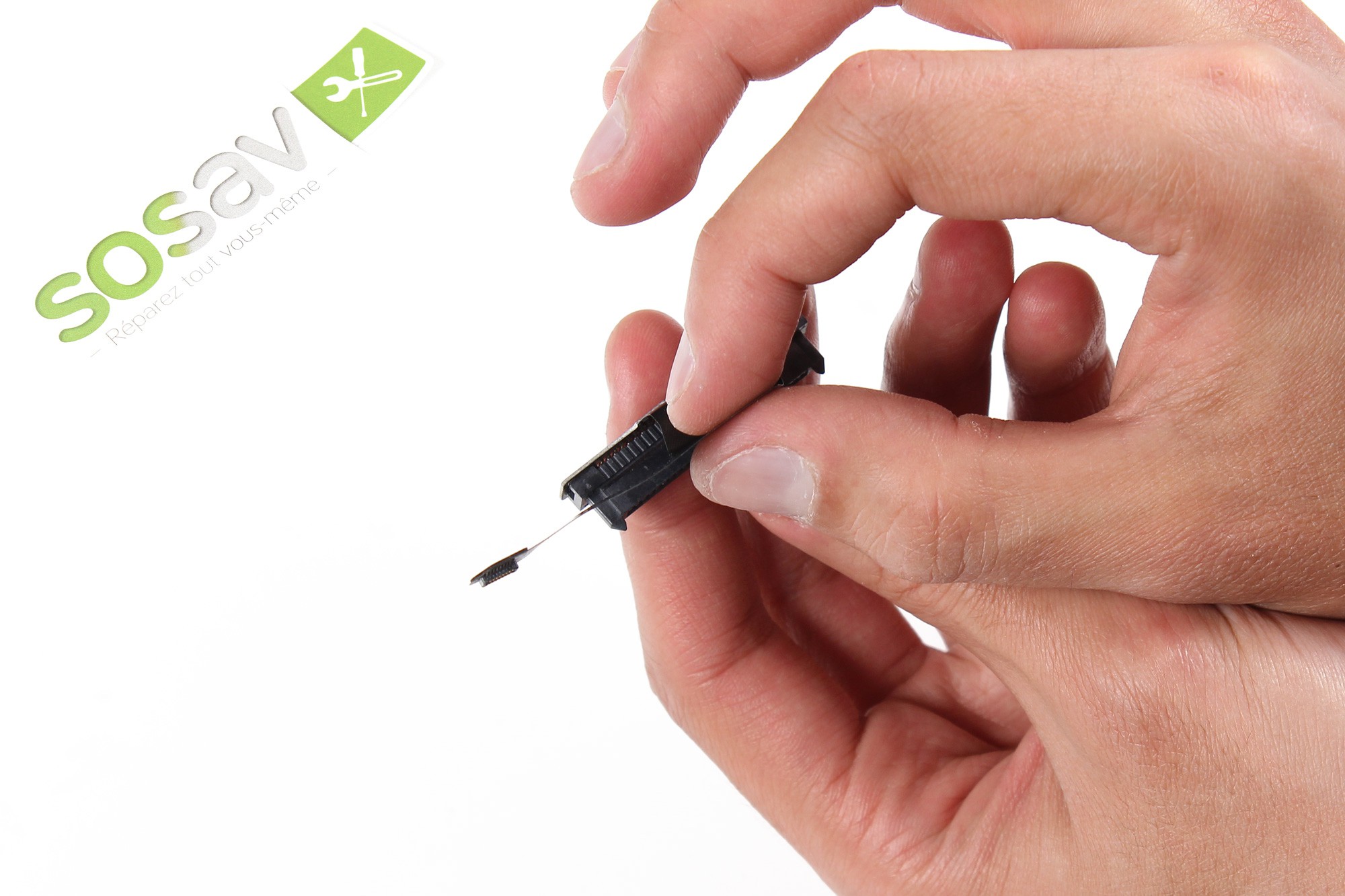 Conseil : Ne perdez pas cette petite pièce ! Elle vous sera nécessaire lors du remontage, ce taquet servant à maintenir la prise d'alimentation parfaitement droite.