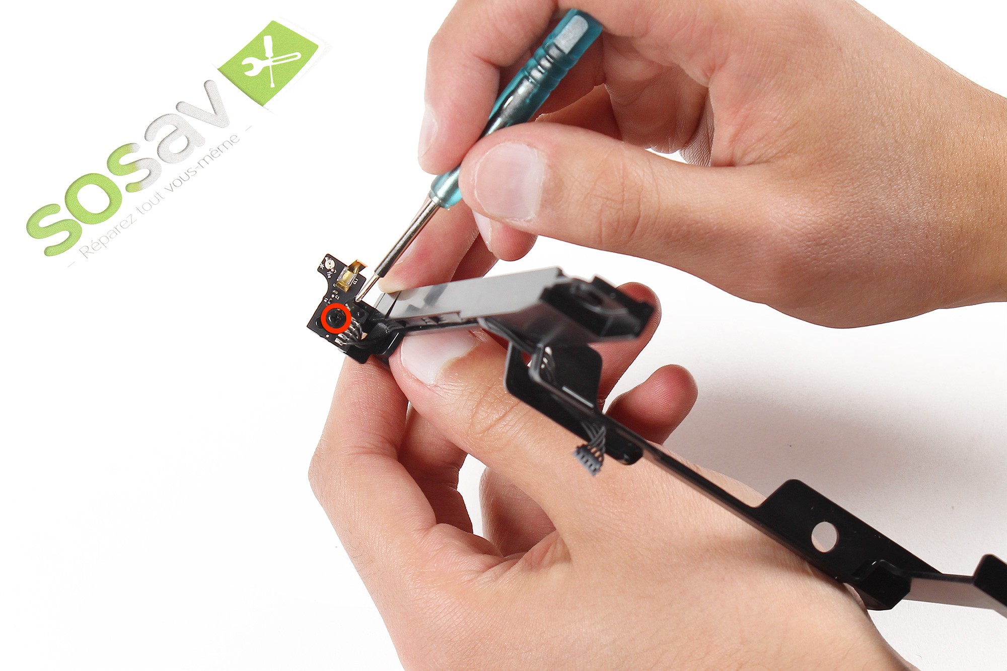 A l'aide d'un tournevis torx, dévissez la vis entourée en rouge.