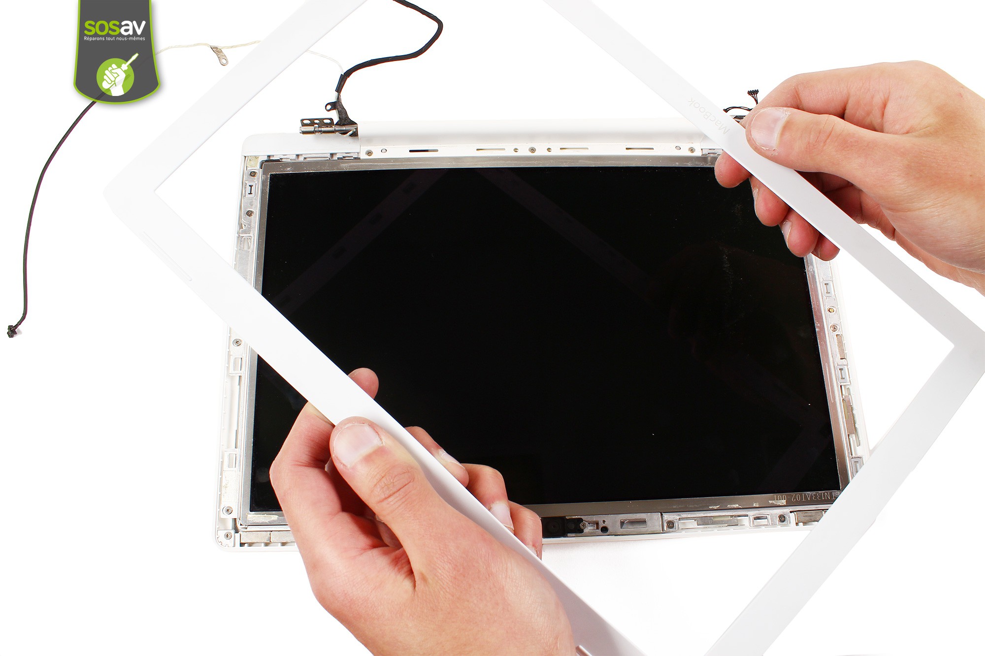Saisissez délicatement l'écran complet puis procédez à son retrait.L'écran complet du Macbook Core 2 Duo (A1181/EMC2200) est désormais démonté.