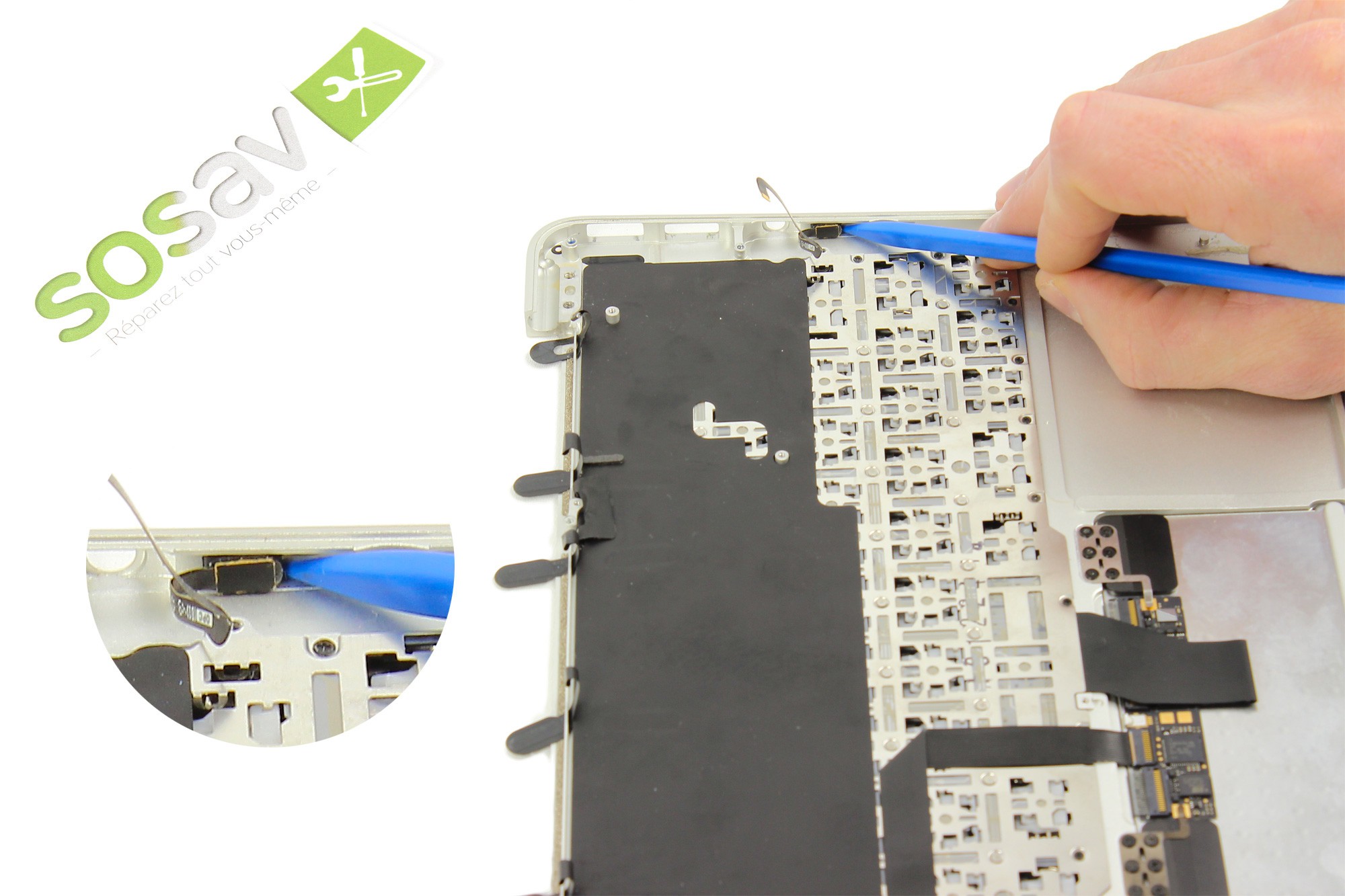 Puis utilisez une spatule en nylon pour finir de soulever les 2 antennes sur toute la longueur de la coque du macbook.