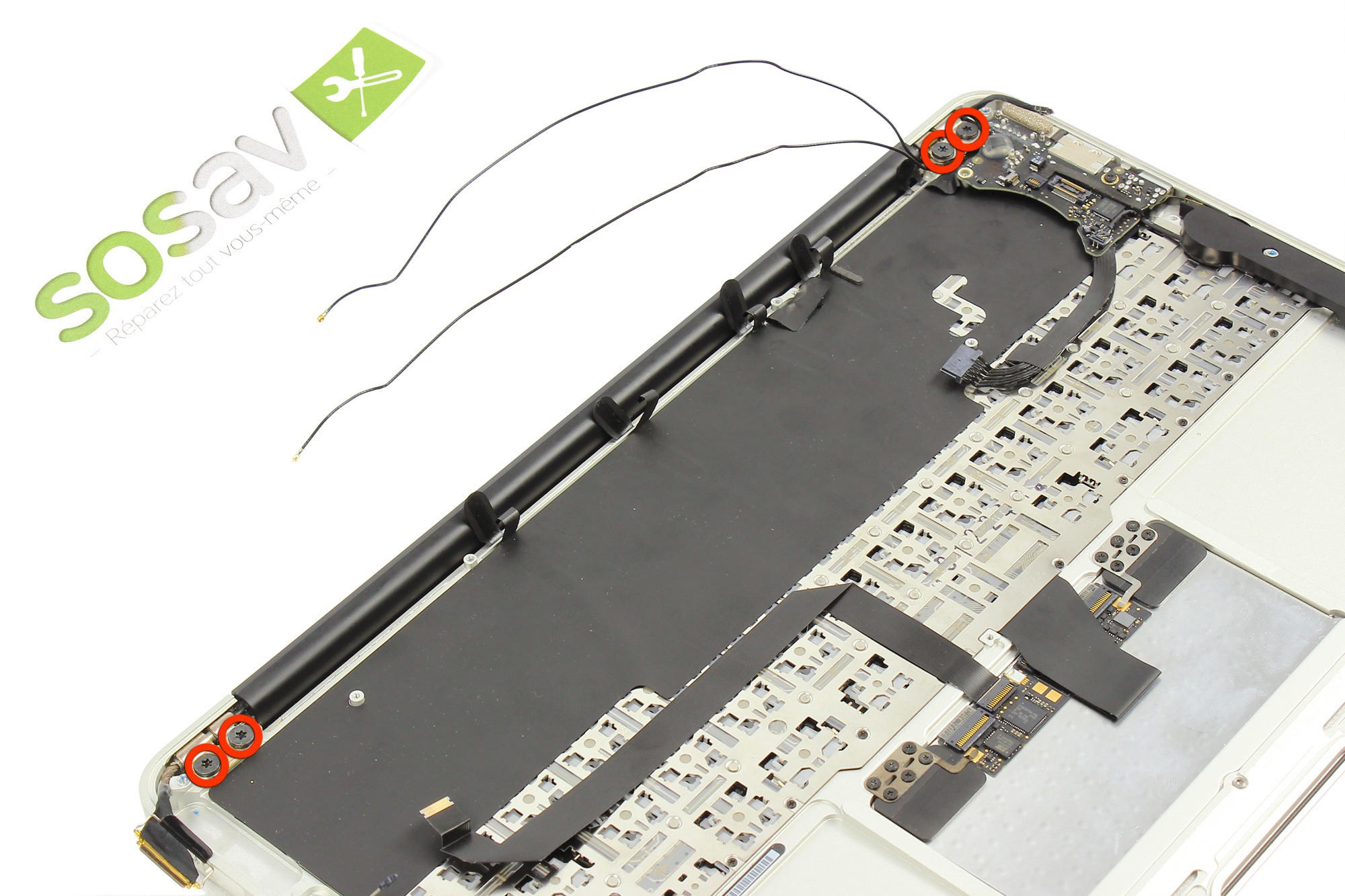 Sortez désormais les 2 antennes de l'ergo qui les retiennent à la carte mère.