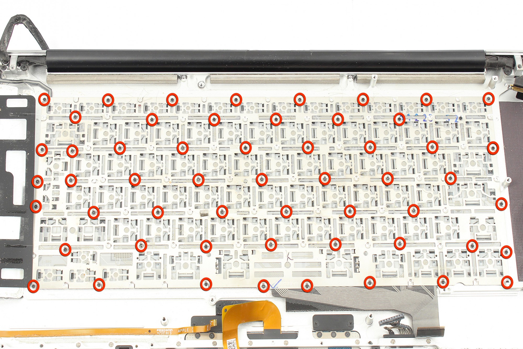 Ces vis retiennent le clavier au châssis du Macbook Pro.