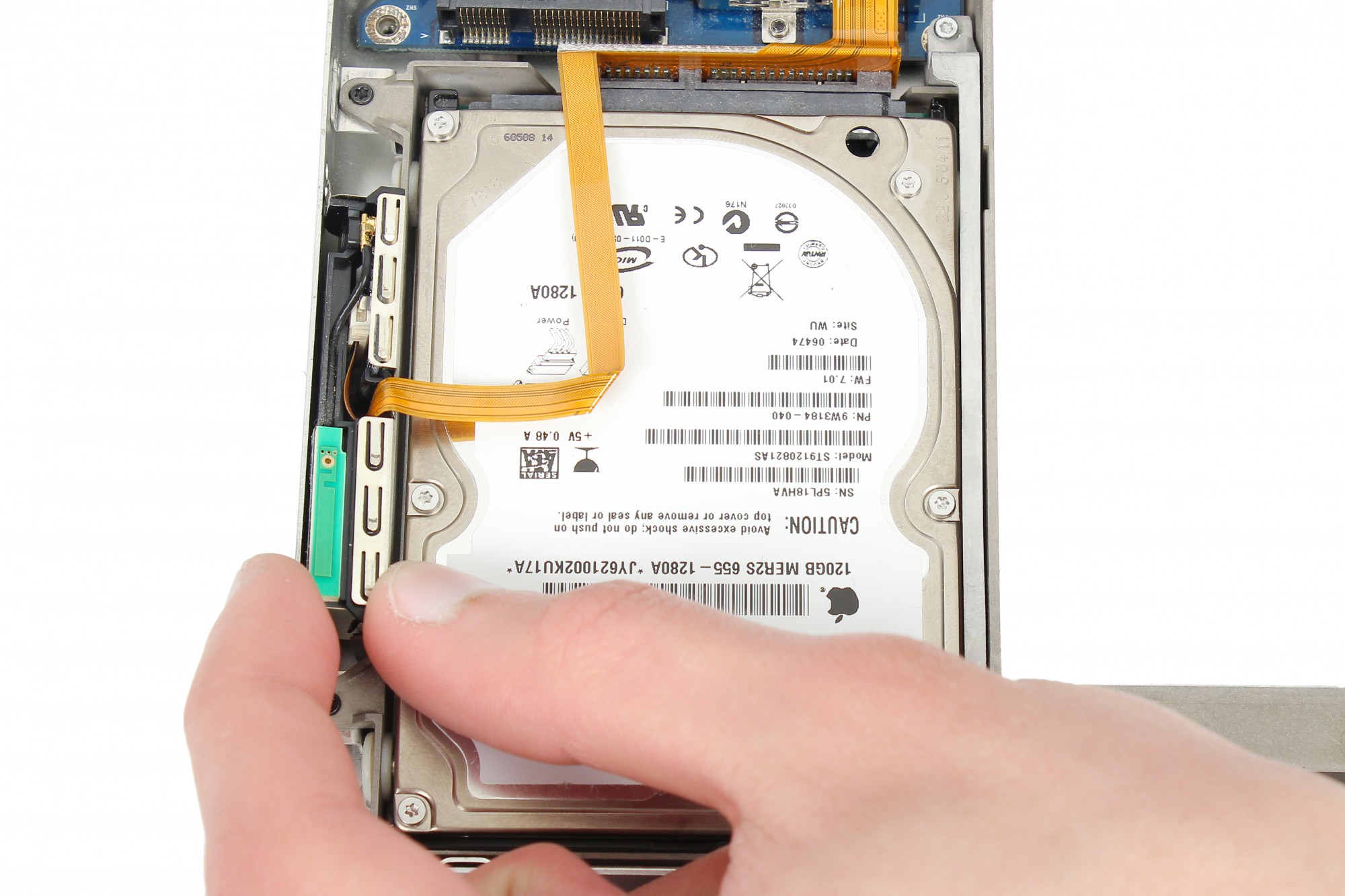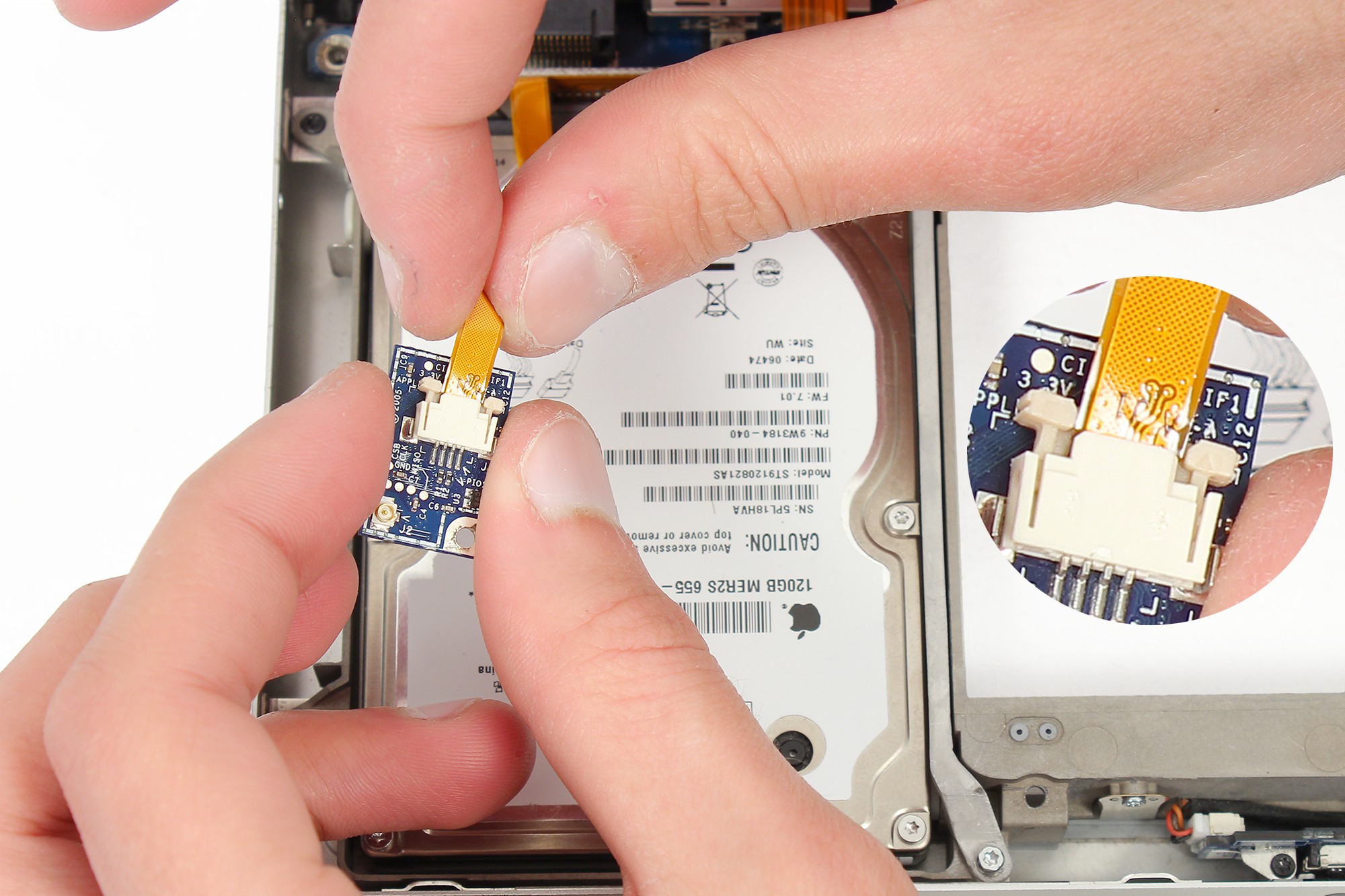 Décollez l'adhésif jaune maintenant la nappe de la carte Bluetooth.