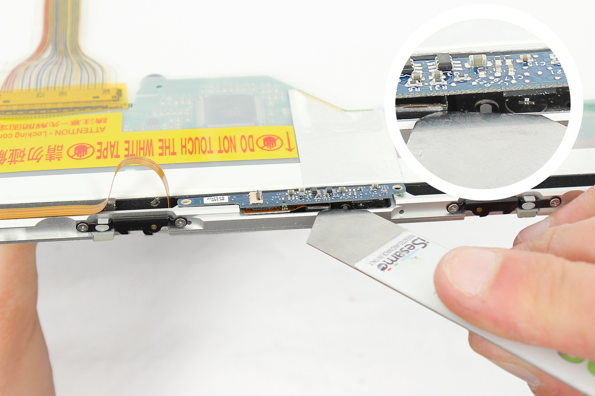 Insérez ensuite une spatule iSesamo dans l'interstice localisée en bas à droite de l'écran.