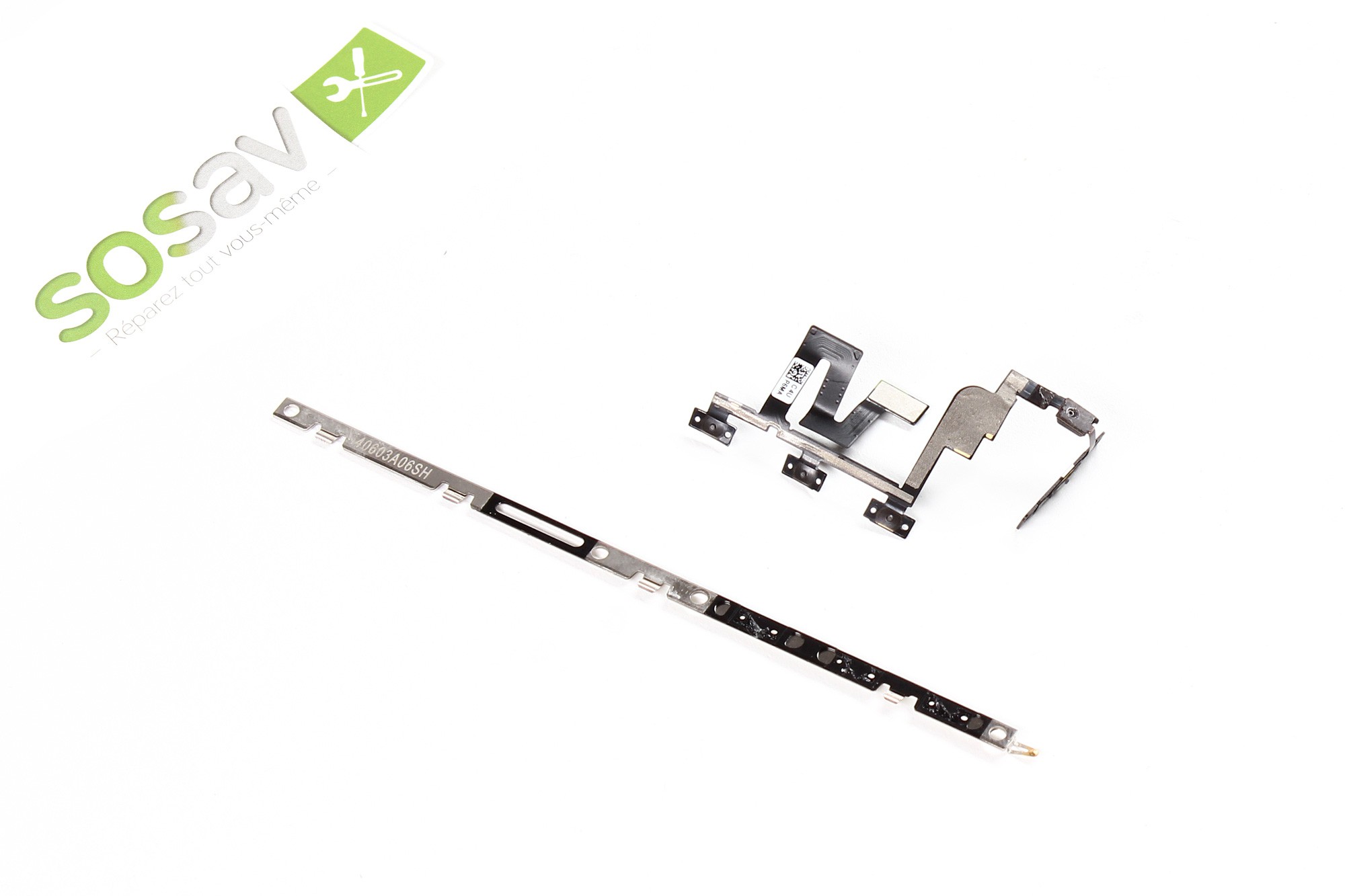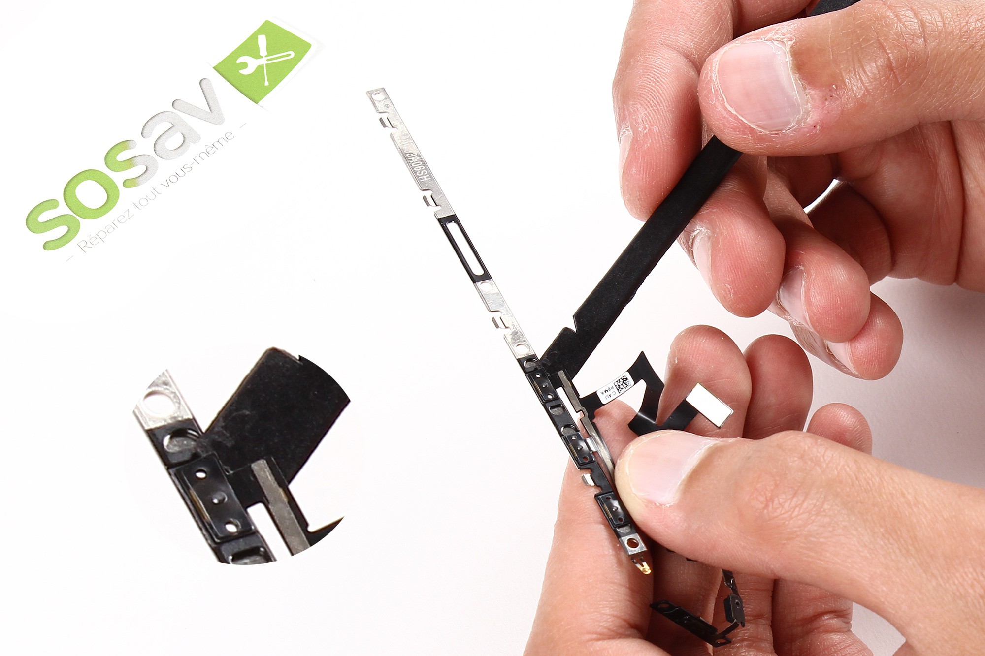 Reprenez la spatule en nylon pour retirer le support ainsi que sa nappe gérant les boutons volume et appareil photo.