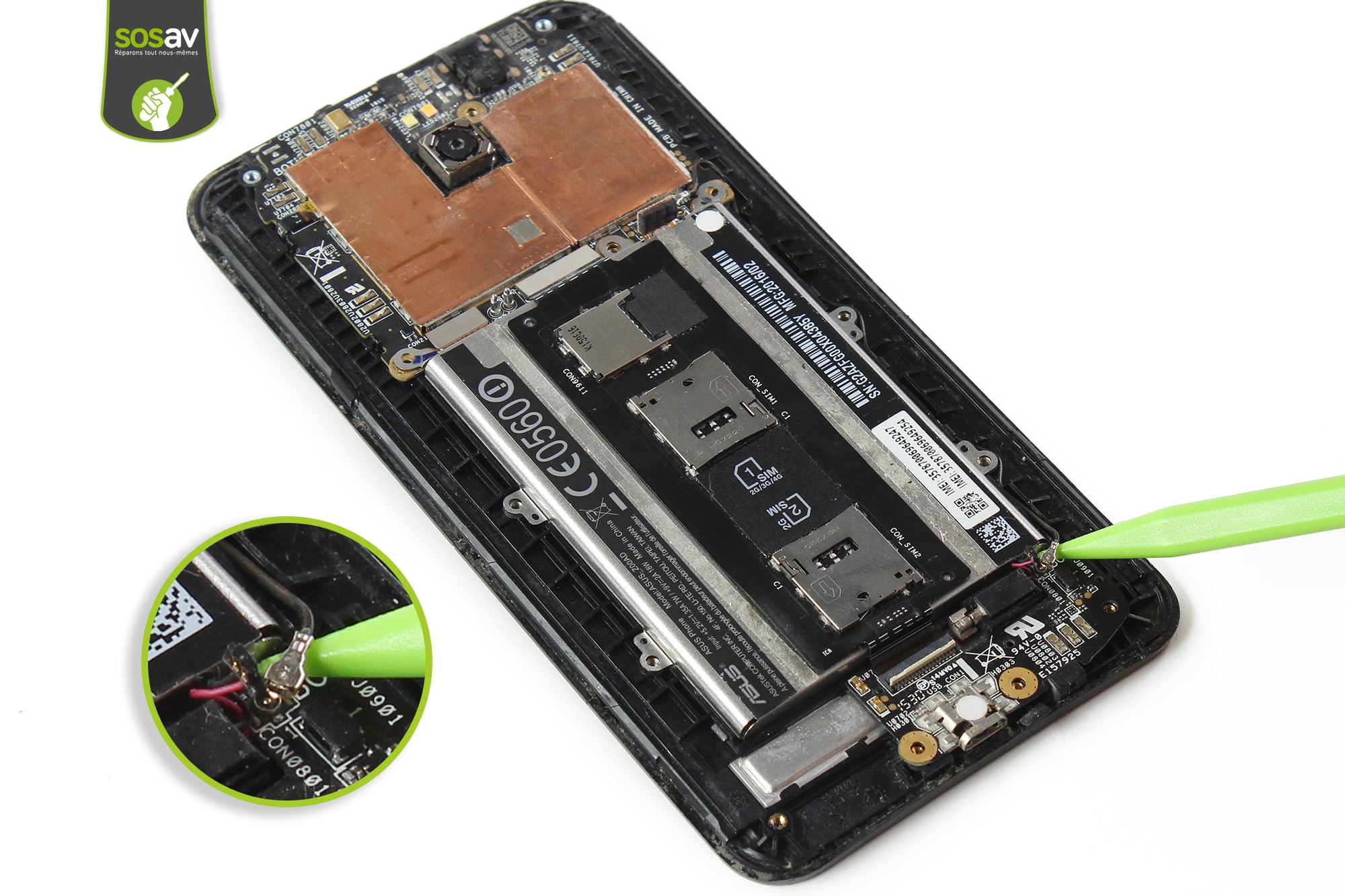 Votre Zenfone 2 a des difficultés pour se charger normalement ? Vous devez titiller le câble micro USB pour qu'il soit reconnu et ce quel que soit le câble utilisé et fonctionnant parfaitement sur d'autres appareils. Votre téléphone n'est plus reconnu par votre ordinateur alors que vous tentez de faire une sauvegarde de vos données ? Bref, les problèmes de charge vous ont gâché la vie et vous souhaitez régler le souci au lus vite mais ne savez pas comment vous y prendre ? Vous êtes au bon endroit pour ne plus angoisser au moment de la recharge ! Les experts de SOSav ont préparé ce guide de réparation illustré et commenté afin de vous expliquer comment votre connecteur de charge Zenfone 2 vous-même pour un tarif défiant toute concurrence ! Car oui, réparer son smartphone est économique et écologique puisque vous ne jetez pas un téléphone encore fonctionnel.