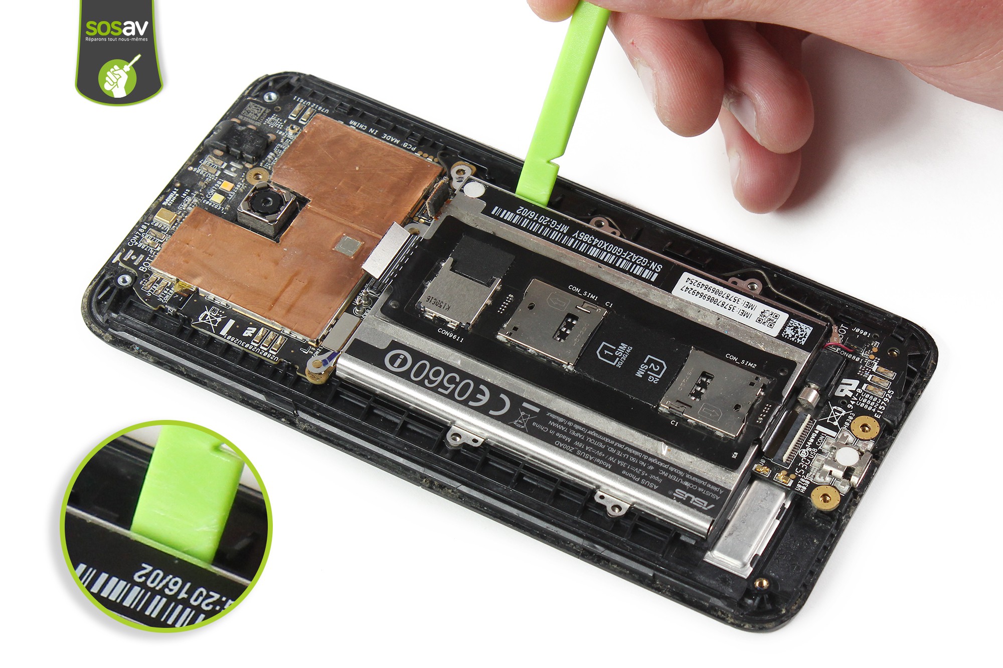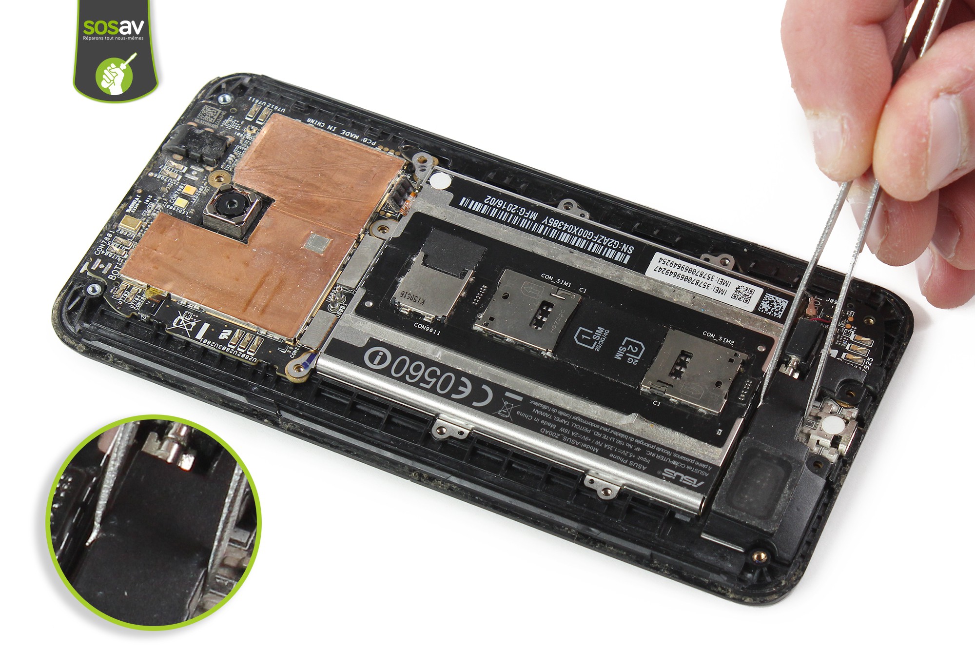 Vous n'entendez pas vos interlocuteurs ou leurs voix semblent très lointaines quand vous êtes au téléphone avec votre Zenfone 2 ? Le son grésille en permanence, rendant les conversations téléphoniques inaudibles et vous avez envie de changer les choses au plus vite ? Vous avez raison de penser à SOSav. Nos experts ont réalisé ce guide de réparation illustré et commenté afin de vous expliquer comment changer ce haut-parleur interne Zenfone 2 pour retrouver toutes les fonctionnalités de votre mobile. Il se situe en haut du téléphone, pour délivrer le son au niveau de l'oreille.