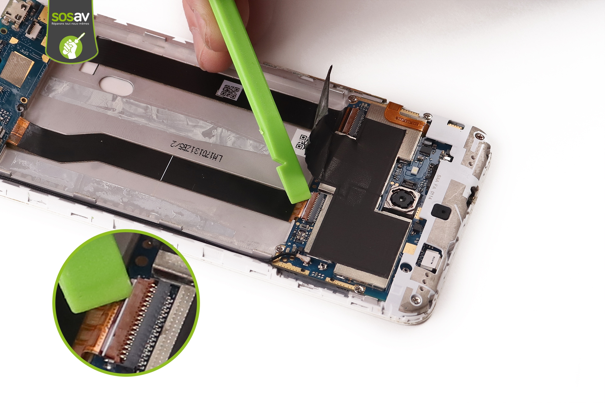 Déconnectez la nappe de la caméra arrière...... Puis sortez-la avec la pince.