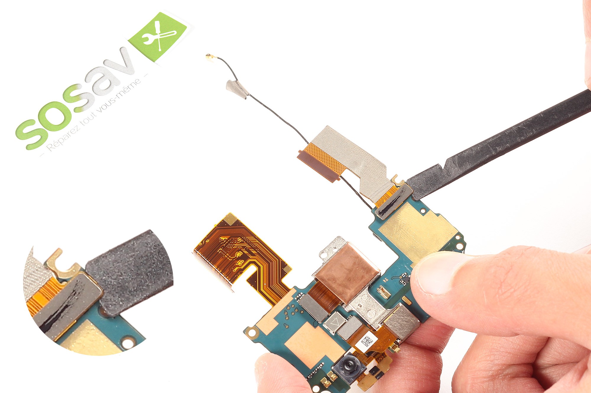 Avec la spatule en nylon, déconnectez délicatement l'antenne GSM.