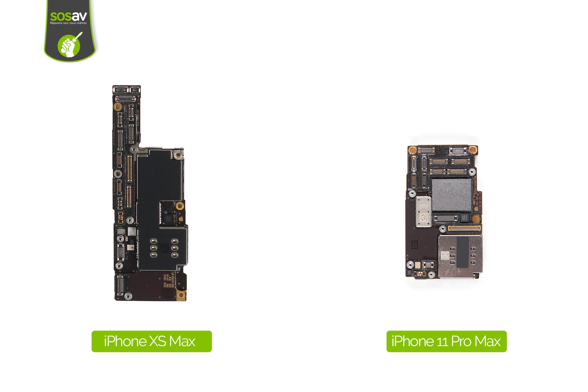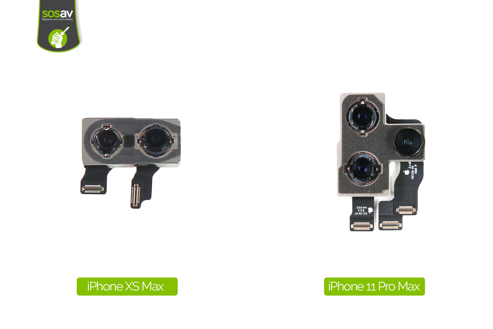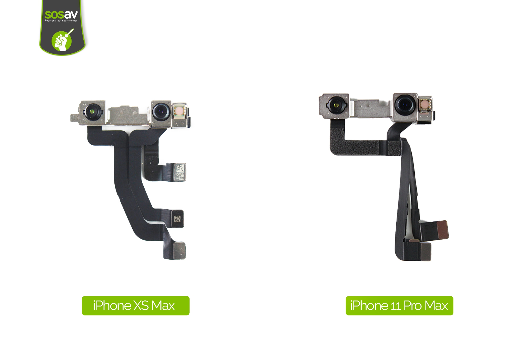Les écrans iPhone 11 Pro Max et iPhone XS Max semblent relativement proches, et demeurent juste différents matériellement parlant.Cependant, aucune compatibilité à signaler compte tenu de l'emplacement des nappes.