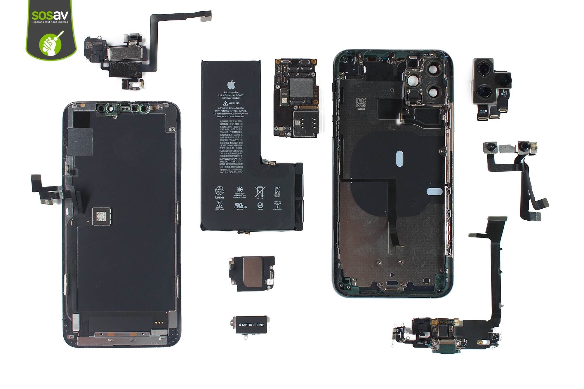 La curiosité est plus forte que vous ? Ca tombe bien, pour nous aussi ! Les techniciens de SOSav n'ont pas résisté à la tentation et on démonté cet iPhone 11 Pro Max dans les règles de l'art ! Un teardown complet pour dévoiler les entrailles de la bête. Vous saurez alors si la réparation iPhone 11 Pro Max est différente de son cousin germain l'iPhone XS Max ou si c'est du copier / coller ! Un démontage complet qui vous tiendra en haleine jusqu'à la dernière étape pour savoir à quelle sauce vous allez être mangé en cas de panne ou de casse de votre iPhone 11 Pro Max. Pas de secret entre nous, on vous dit tout dans ce démontage complet :)