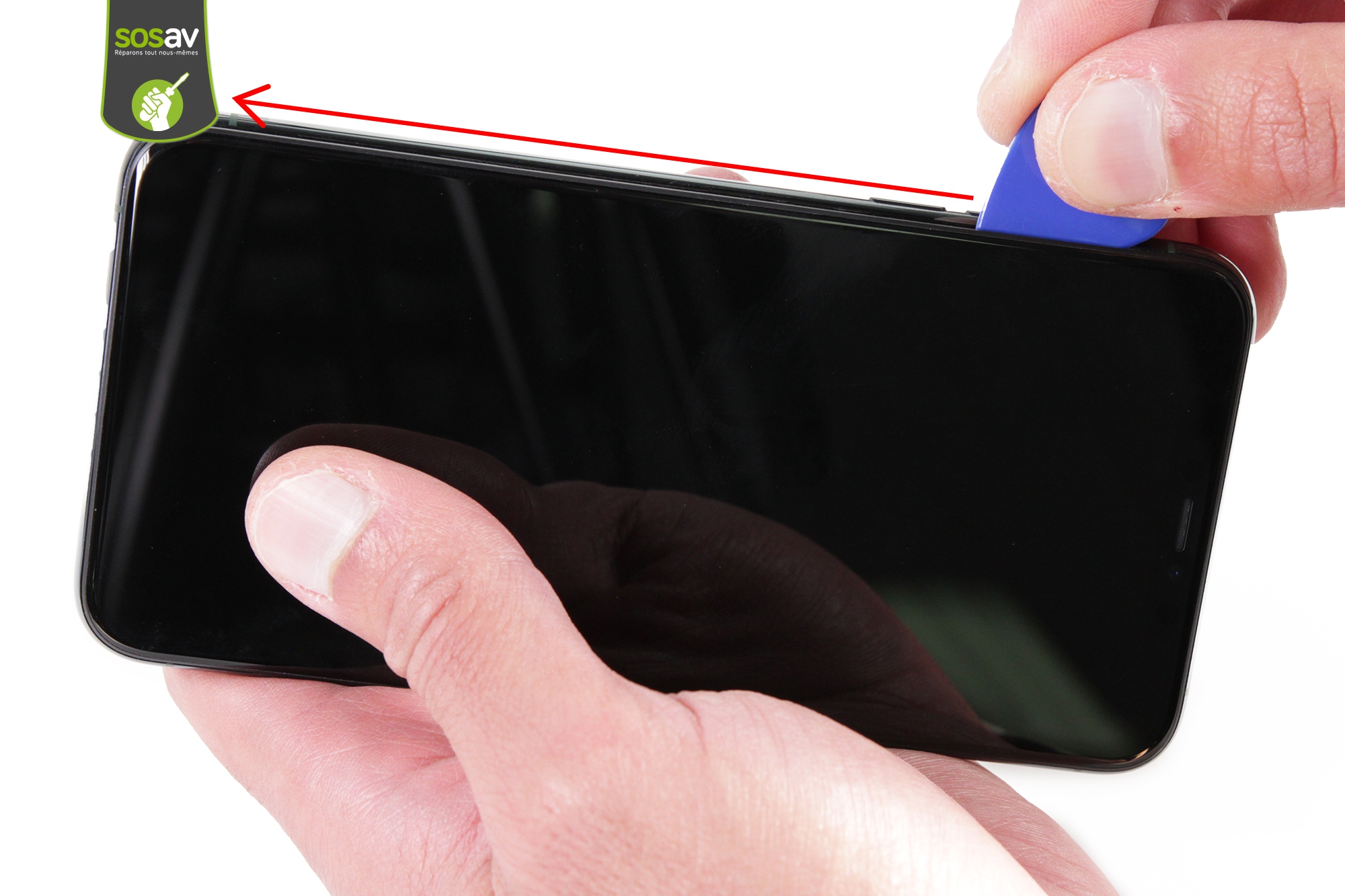 Tout comme les iPhones de génération précédente, le retrait de la nappe de l'écran comprenant l'écouteur interne/illuminateur FaceiD/Microphone secondaire est possible et reste relativement simple.A noter que le changement de cette nappe fait perdre la fonction FaceID si elle est faite en dehors du réseau Apple. Apple ne vendant ni pièces détachées, ni manuels de service, ni outils pour appairer une nouvelle nappe.Apple a récemment ouvert son programme de réparations aux professionnels tiers pour la réparation de ce smartphone. Cependant, cela semble plus être un effet d'annonce pour éviter les procès et poursuites liées à leur politique de disponibilité de pièces détachées, notamment aux USA avec la législation du "right to repair".Ce programme risque d'être très très limité (aucun particulier ne pourra acheter de pièces) et les pièces disponibles à l'achat, très chères pour tout professionnel tenté par le programme.
