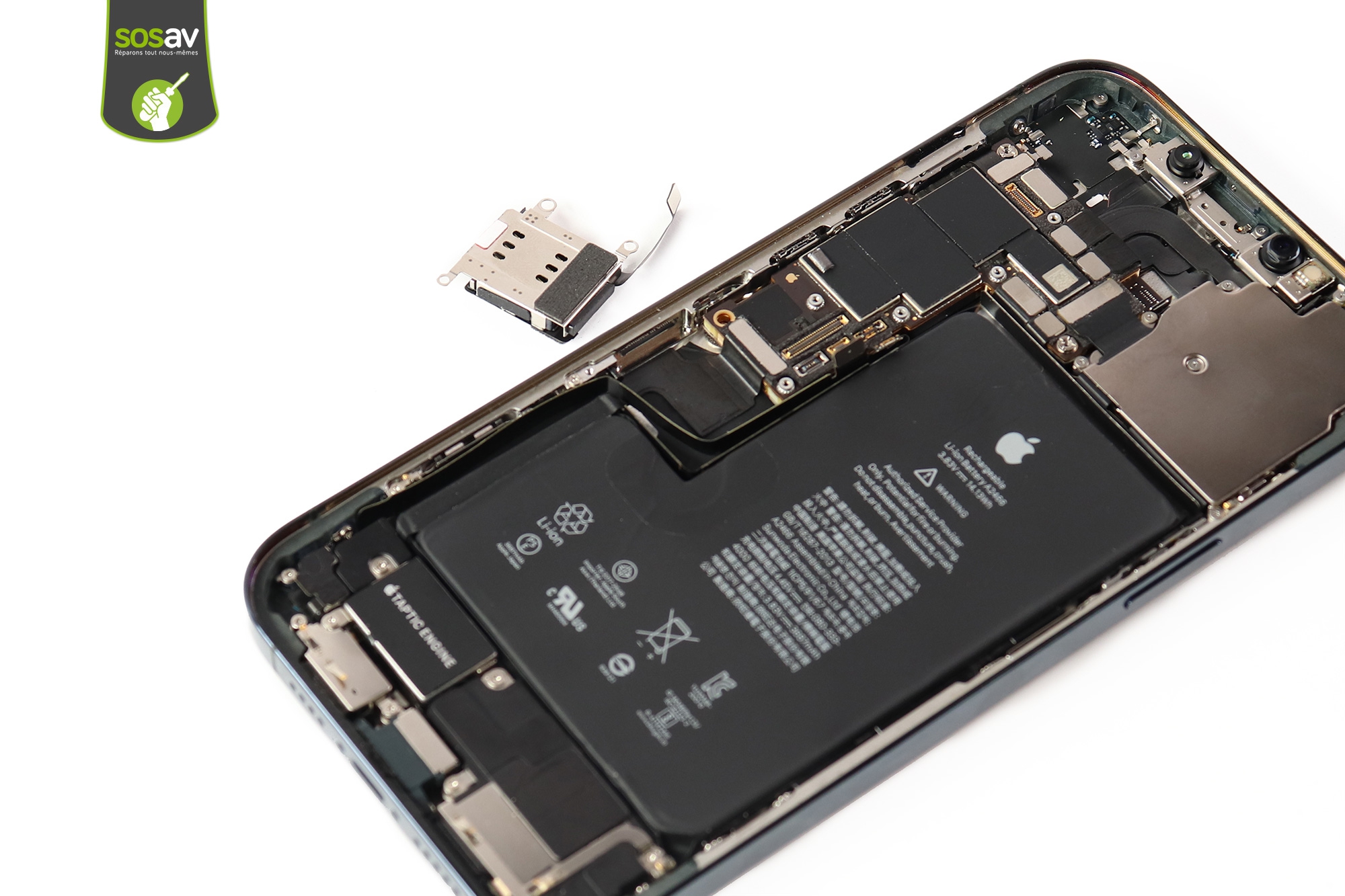 Votre lecteur SIM iPhone 12 Pro Max ne fonctionne plus ? Il ne détecte aucune carte SIM après avoir testé différents opérateurs ? Une carte SIM est bloquée à l'intérieur et le tiroir SIM est cassé ? Comptez sur les experts SOSav pour vous aider avec ce guide de réparation illustré et commenté. Toutes les étapes sont détaillées afin de vous expliquer les manoeuvres à suivre pour changer ce lecteur défaillant vous-même à moindre frais.