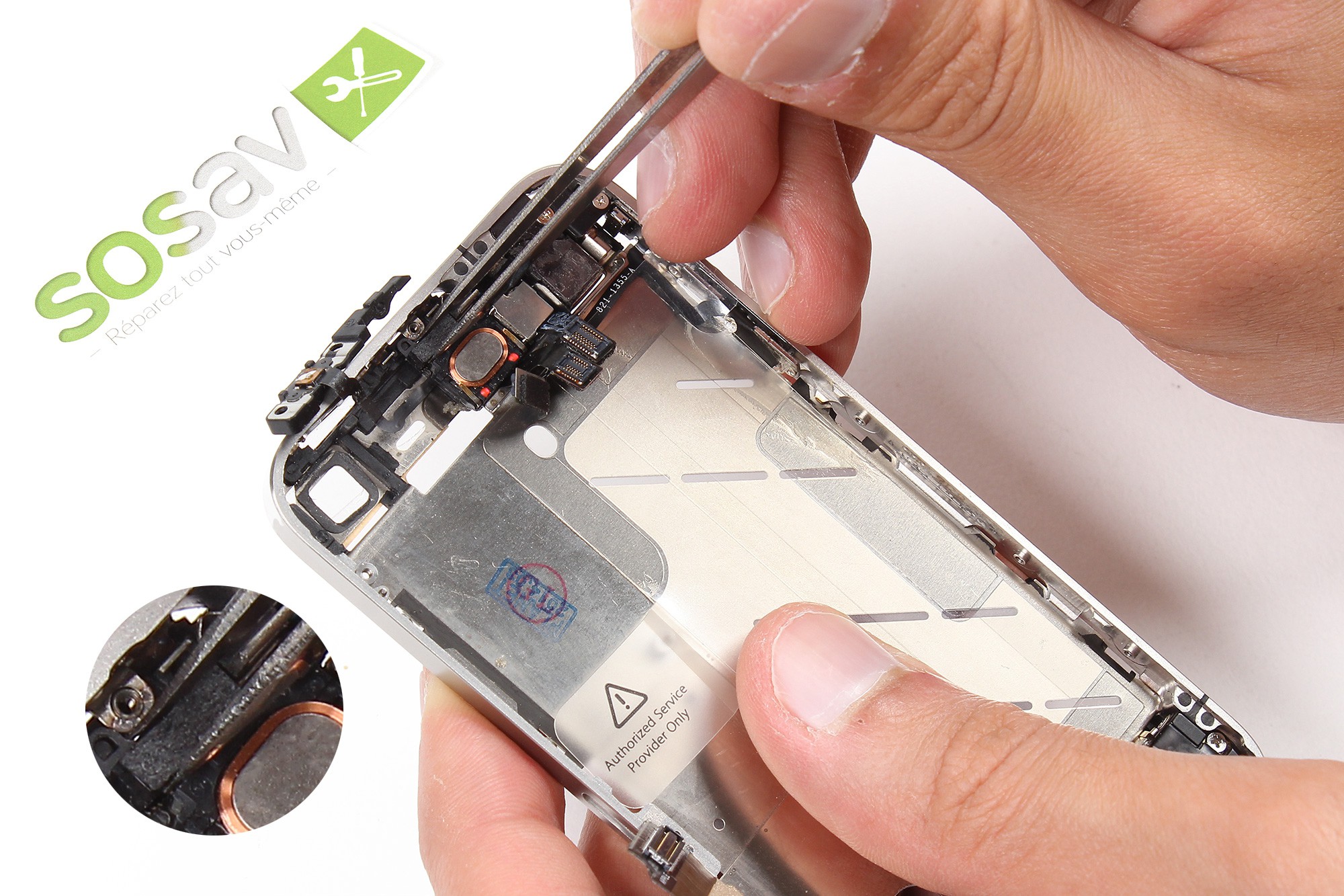 Enfin, déclipsez la nappe des boutons de volume/bouton vibreur/prise jack.